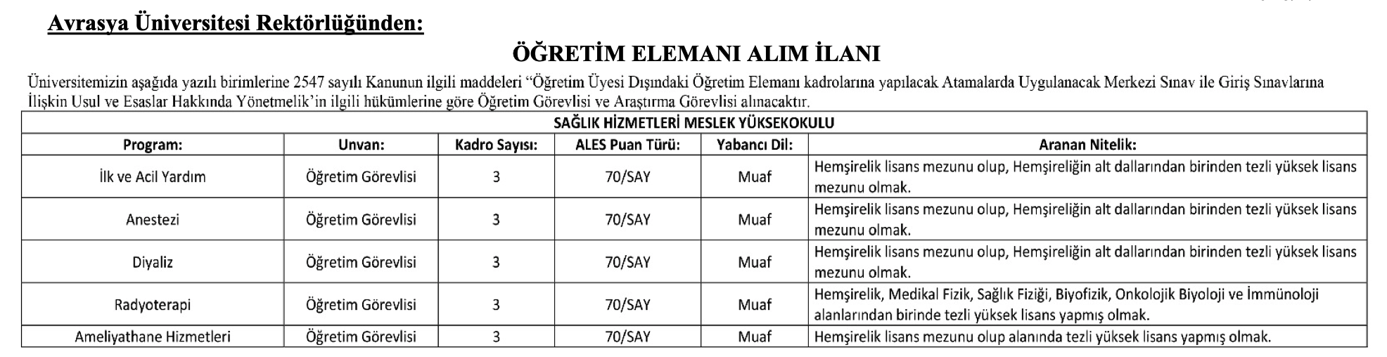 Profesör, doçent, öğretim görevlisi kadroları için ilan yayımlandı
