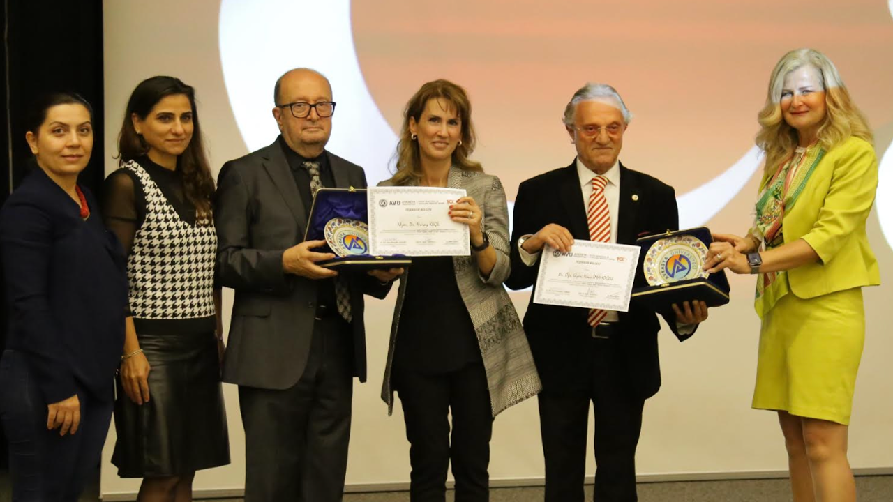 Sunumlarını gerçekleştiren Dr. Öğr. Üyesi Naci İmamoğlu ve Uzm. Dr. Nuray Keçe’ye Avrasya Üniversitesi Rektörü Prof. Dr. Füsun Terzioğlu ve Rektör Yardımcısı Prof. Dr. Yavuz Özoran tarafından plaket takdim edildi.