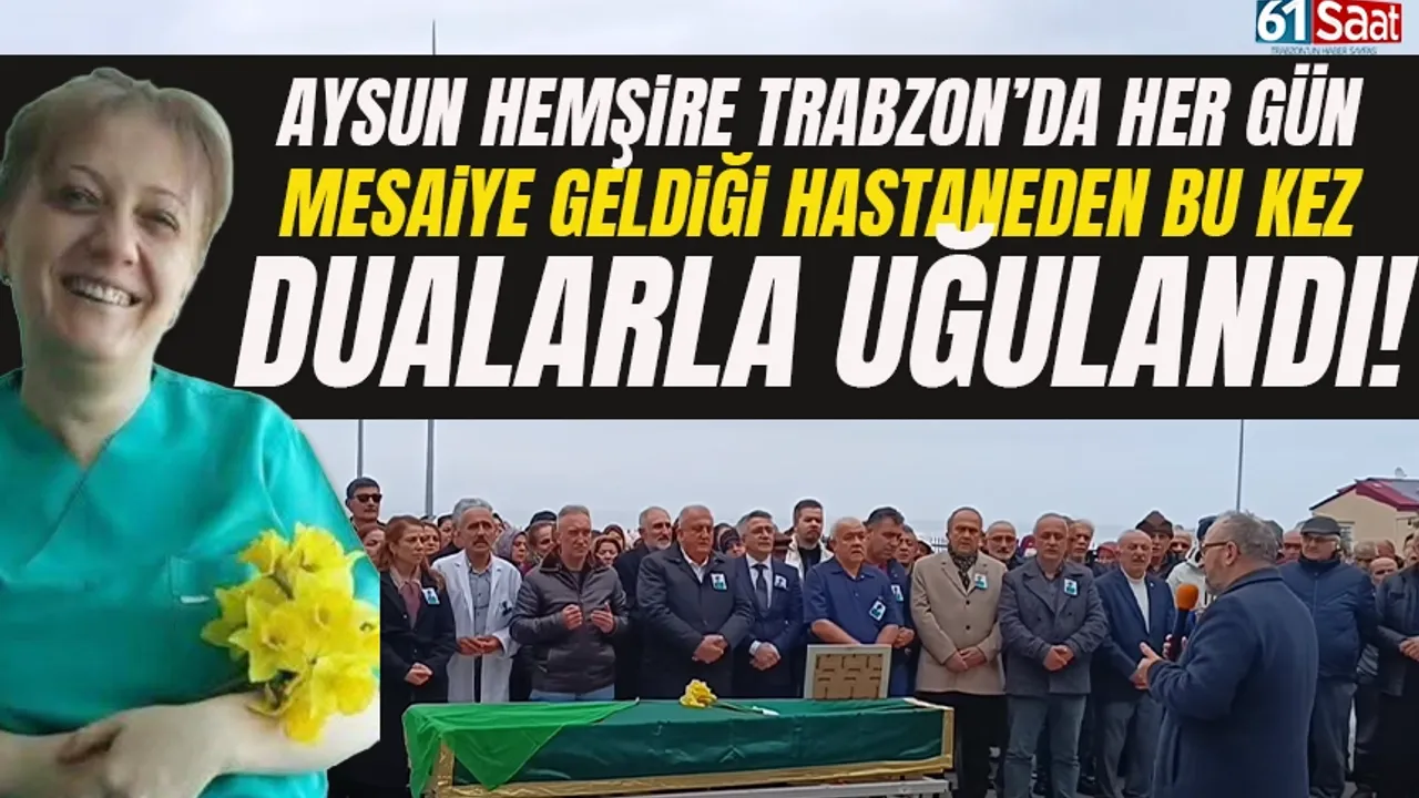 Törende Aysun hemşirenin cenazesi hastane önünde sedye üzerine konulurken, törene Trabzon İl Sağlık Müdürü Dr. Mehmet Topsakal ile ailesi, hastane personeli, ilçeden vatandaşlar ve çok sayıda seveni katıldı