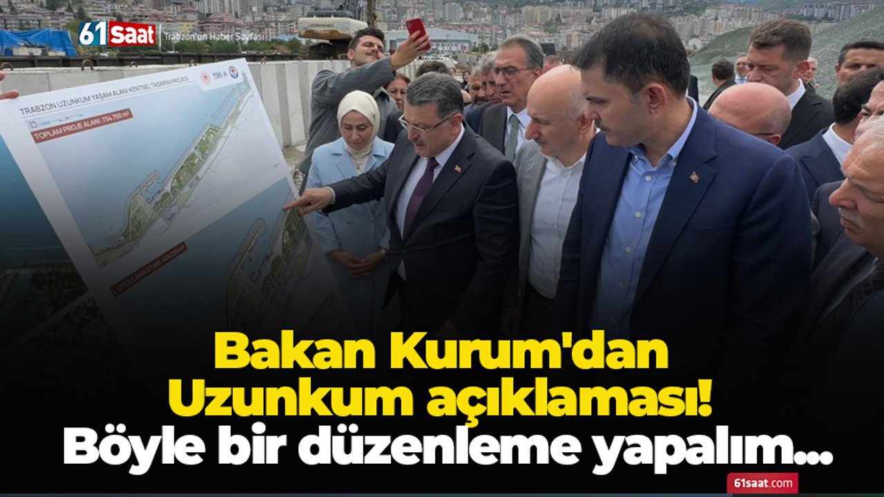 Çevre, Şehircilik ve İklim Değişikliği Bakanı Murat Kurum, Trabzon Büyükşehir Belediye Başkanı Ahmet Metin Genç’ten Uzunkum Projesi ile ilgili bilgi aldı. Bakan Kurum açıklamalarında, “Belki 1-2 köprü koyarak şehir ve sahili birleştirerek bisiklet yolu, denize karşı oturma ve akşamları gezmeleri noktasında alanlar olabilir. Böyle bir düzenleme yapalım” dedi.