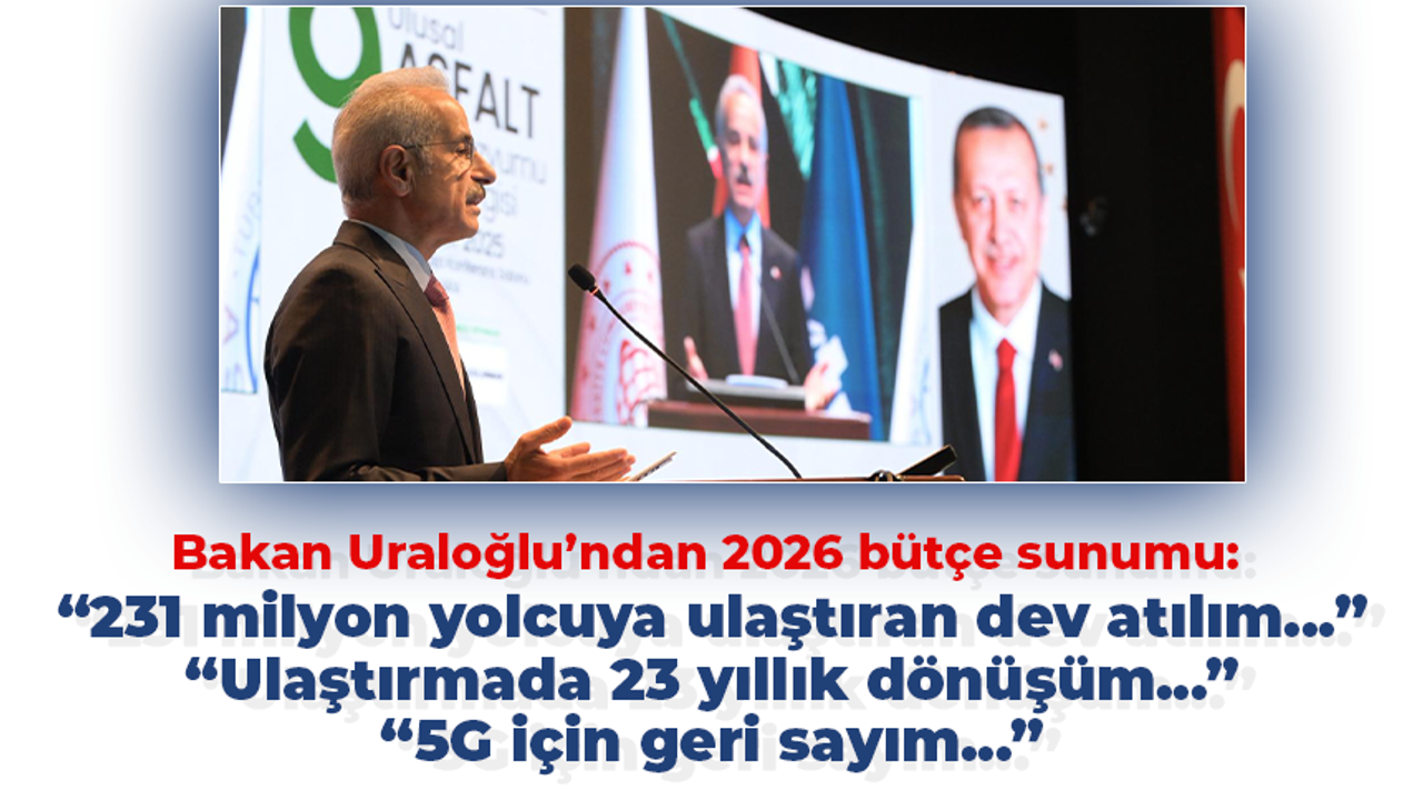Ulaştırma ve Altyapı Bakanı Abdulkadir Uraloğlu, Türkiye’nin ulaştırma, altyapı, lojistik, demiryolu, havacılık ve haberleşme alanlarında yürüttüğü dev projelere ilişkin kapsamlı bir sunum yaptı. Ülke genelinde 2 bini aşkın şantiyede aralıksız çalışmaların sürdüğünü vurgulayan Uraloğlu, Türkiye’nin stratejik konumuyla lojistik dünyanın merkezine dönüştüğünü, kamu özel işbirliği projelerinde ise ülkeye milyarlarca dolarlık kazanç sağlandığını belirtti. Demiryollarından havalimanlarına, otoyollardan 5G teknolojisine kadar birçok başlıkta önemli veriler paylaşan Bakan, Türkiye’nin ulaştırma vizyonunun “küresel rekabet gücünü artırma” hedefiyle ilerlediğini söyledi.
