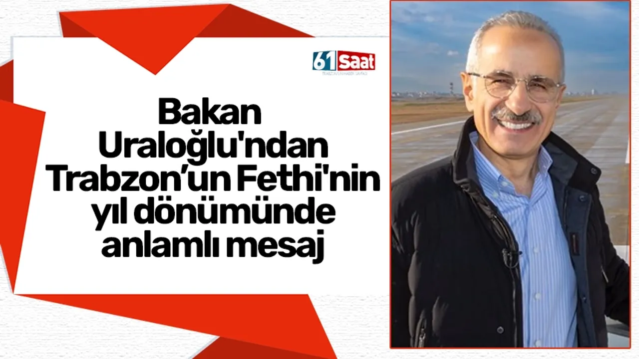 Ulaştırma ve Altyapı Bakanı Abdulkadir Uraloğlu, Trabzon’un fethinin 564. yıl dönümünde sosyal medya hesabından yayımladığı mesajla tarihe ve ecdat mirasına sahip çıkmanın önemine vurgu yaptı.
