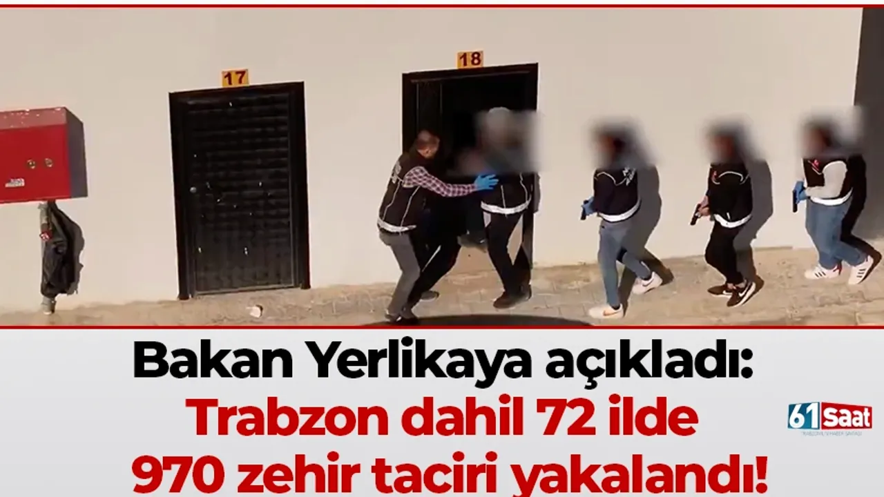 İçişleri Bakanı Yerlikaya, sosyal medya hesabından yaptığı açıklamada; 72 ilde uyuşturucu madde satıcılarına yönelik son bir haftadır devam eden operasyonlarla ilgili bilgi vererek, "352 kilogram uyuşturucu madde ile 4 milyon 158 bin adet uyuşturucu hap ele geçirerek, insanlara arz edilmesini ve toplum sağlığına zarar vermesini engelledik. 970 şüpheliyi yakaladık" ifadesini kullandı.