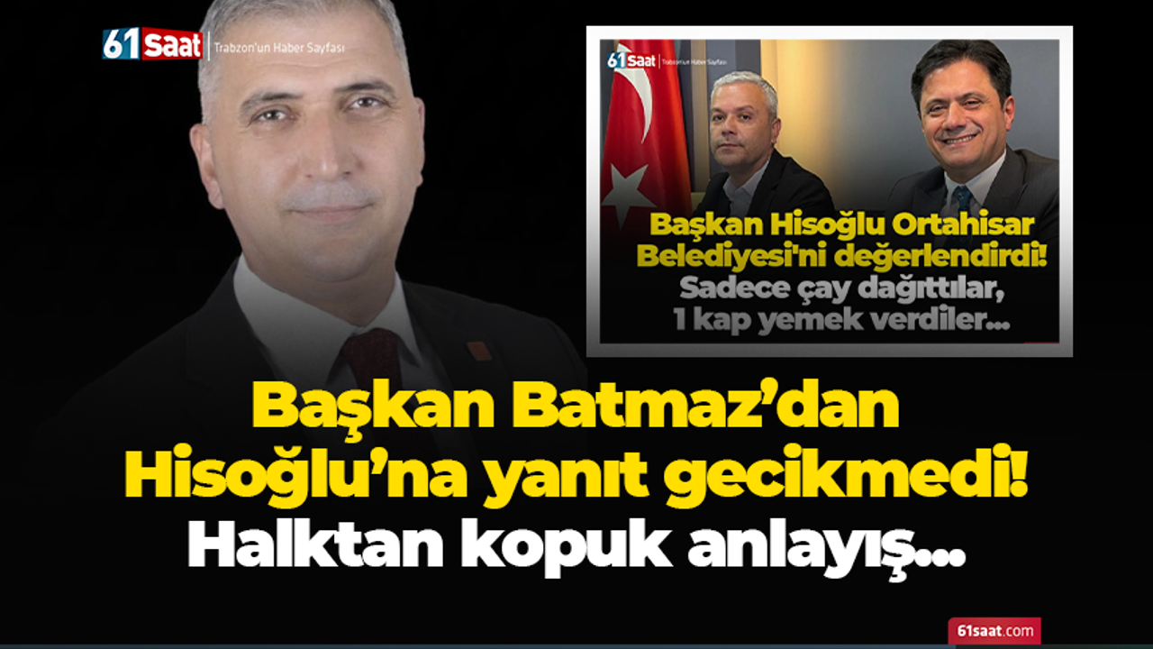 AK Parti Ortahisar İlçe Başkanı Seyit Hisoğlu’nun dün Trabzon basını ile bir araya gelerek yaptığı açıklamalar sonrası CHP Ortahisar İlçe Başkanı Haluk Batmaz'dan yanıt gecikmedi.