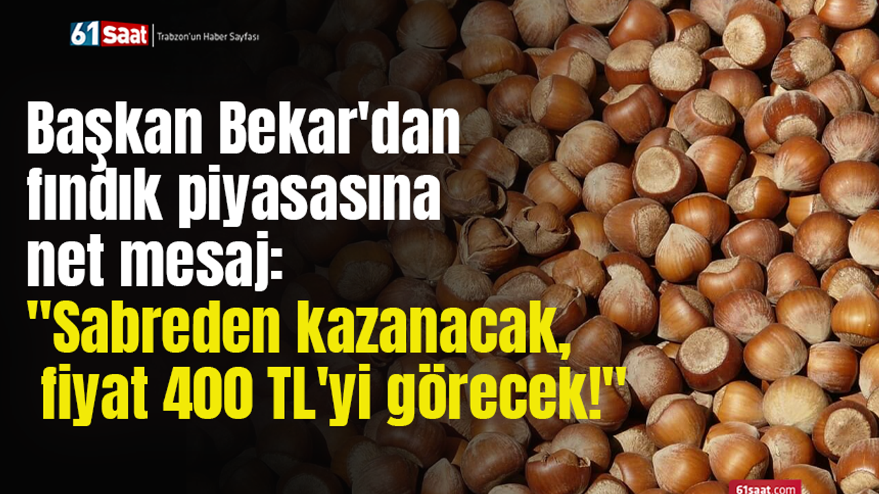 Üreticilere seslenen Bekar, "Şu an fiyat 300 TL civarında. Eğer üreticimiz sabreder, ihtiyacı kadarını satar ve ürününü emanete vererek piyasayı uluslararası firmaların eline düşürmezse, fındık fiyatının 300 TL'yi aşıp 400 TL'lere dayandığını göreceğiz. Biraz sabır, biraz dirayet gerekiyor," ifadelerini kullandı.