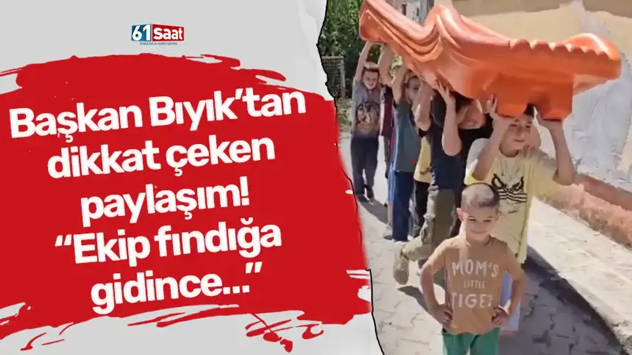 Başkan Bıyık ise bu görüntüler esprili bir dille paylaştı. Bıyık, “Ekip fındığa gittiği için iş başa düştü.” dedi.