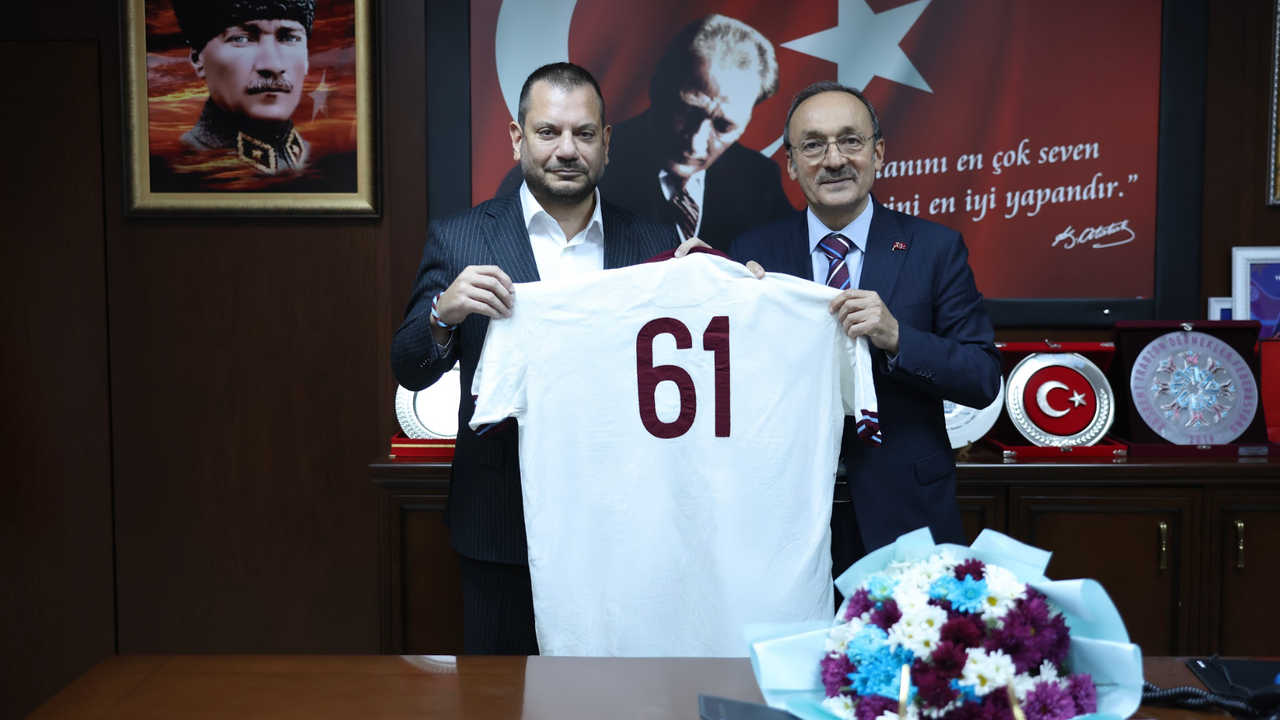 Trabzonspor Başkanı Ertuğrul Doğan ve Yönetim Kurulu üyeleri, Düzköy Belediye Başkanı Selim Çelenk’e nezaket ziyaretinde bulundu. Samimi bir sohbet ortamında gerçekleşen ziyarette Başkan Çelenk, Başkan Ertuğrul Doğan’a kendi yazdığı “Yer Bordodur Gök Mavi” isimli marşın tablosunu ve Düzköyspor formasını takdim etti. Trabzonspor Başkanı Ertuğrul Doğan ise Düzköy Belediye Başkanı Selim Çelenk’e bordo mavili forma hediye etti.