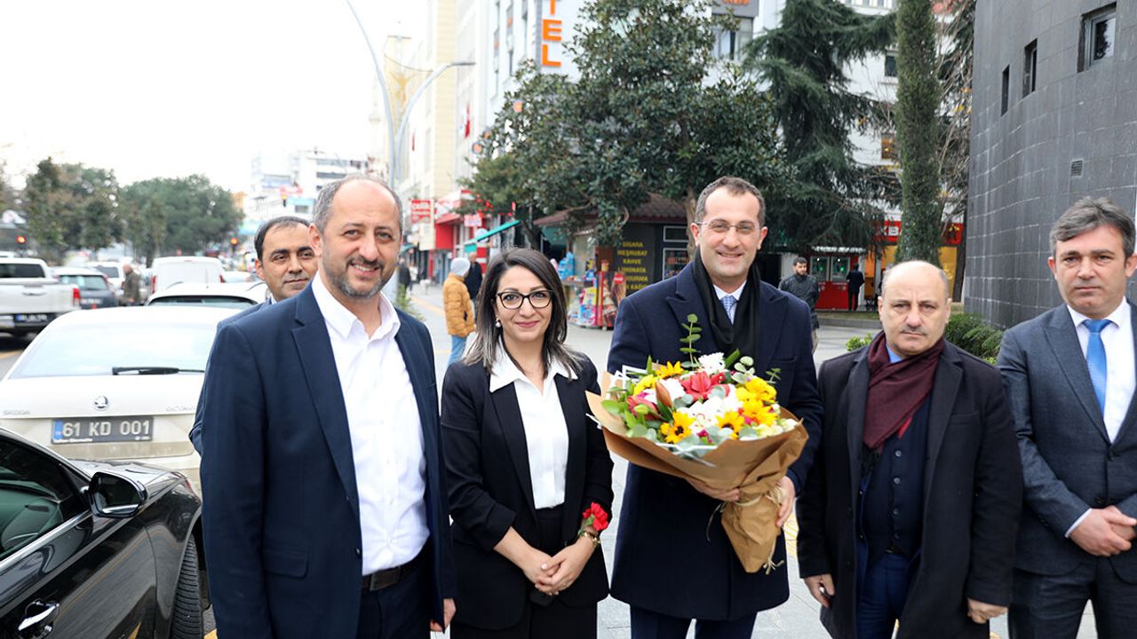 Akçaabat Belediye personelleri tarafından çiçek takdim edilen Başkan Ekim, tüm personelle tek tek tokalaştı.