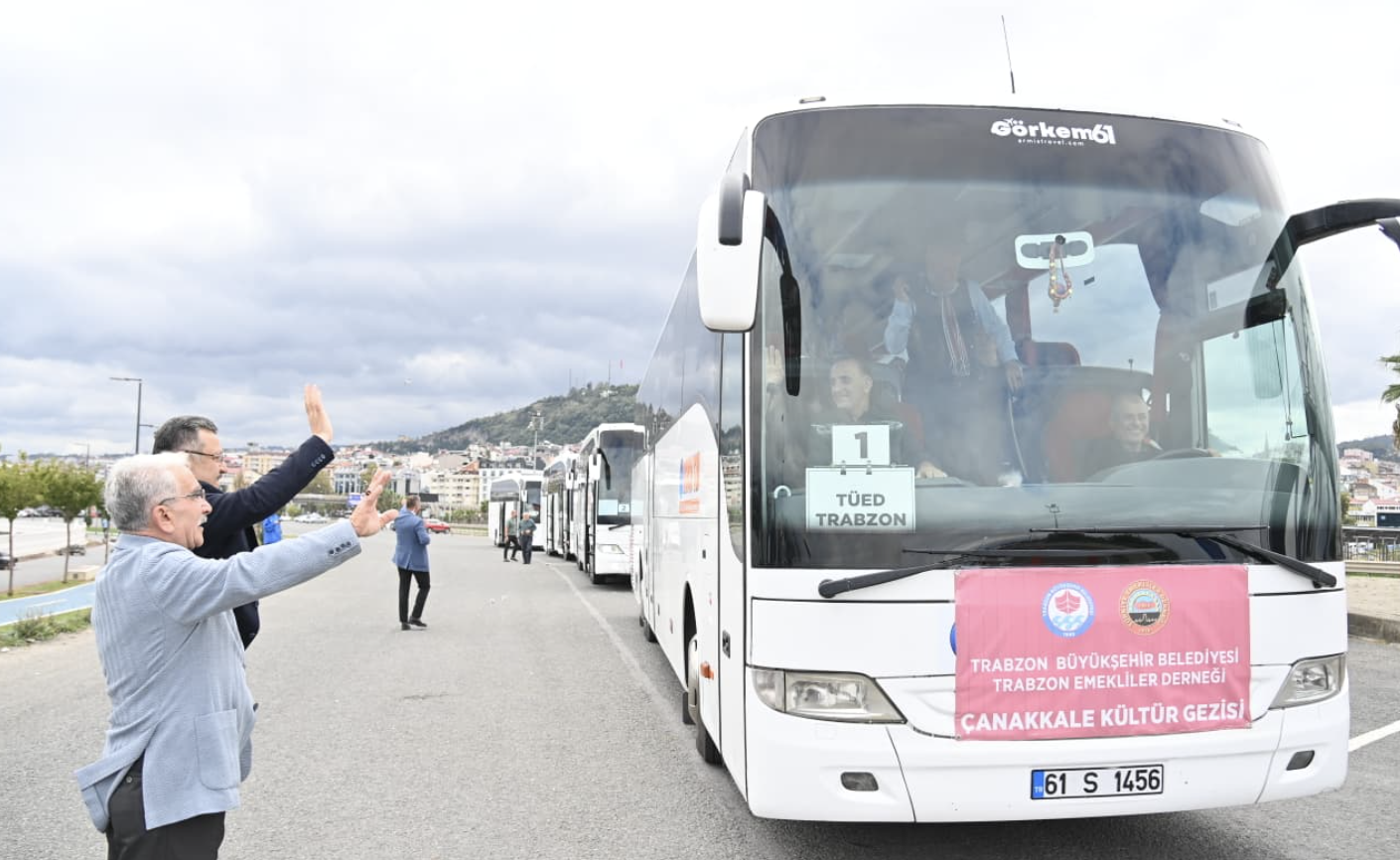 Trabzon Büyükşehir Belediye Başkanı Ahmet Metin Genç, Türkiye Emekliler Derneği Trabzon Şube Başkanı Burhan Bayraktar ve beraberindeki 144 emekliyi 5. kez Çanakkale kültür gezisine uğurladı. Dört otobüsle yola çıkan emekliler, şanlı tarihimizin en önemli dönüm noktalarından biri olan Çanakkale’de ecdadı yad edecek.
