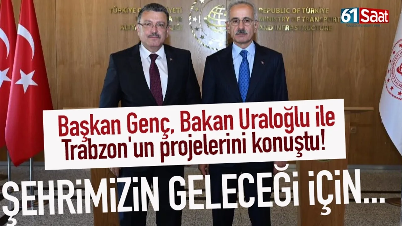Trabzon Büyükşehir Belediye Başkanı Ahmet Metin Genç, Ankara’da Ulaştırma ve Altyapı Bakanı Abdulkadir Uraloğlu’nu ziyaret etti. Bakanlıkta gerçekleşen görüşmede, Trabzon’un ulaşım ve altyapı yatırımları masaya yatırıldı.