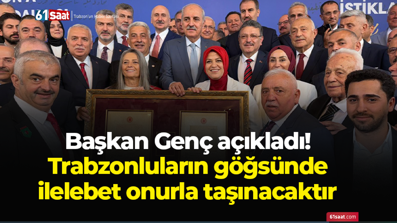 Törene katılan Trabzon Büyükşehir Belediye Başkanı Ahmet Metin Genç, tarihi bir gurur yaşadıklarını ifade ederek, “Bu madalya yalnızca şehrimizin değil, tüm milletimizin kahramanlıklarının tescilidir. Trabzon’un ve Trabzonluların göğsünde ilelebet onurla taşınacaktır” dedi.