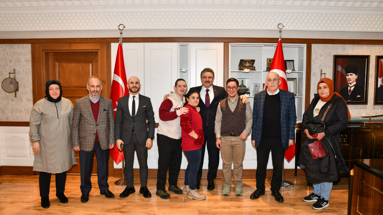 Trabzon Büyükşehir Belediye Başkanı Ahmet Metin Genç, Trabzon Down Sendromlular Derneği Başkanı Ensar Öztürk ve down sendromlu bireyleri makamında ağırladı. Ziyarette; Dernek Yönetim Kurulu Üyesi Hakan Bahçekapılı, Trabzon Büyükşehir Belediyesi Şehir Tiyatrosu Oyuncusu ve eğitmen Emre Yeşilyurt ile çocukların aileleri de yer aldı. Down sendromlu çocuklar için birçok etkinlik düzenlediklerini belirten Dernek Başkanı Ensar Öztürk, “Tiyatro da bunlardan biri. Çocuklarımızı kaynaştıran ve mutlu eden bir etkinlik. Bu işin eğitim boyutu da var. Down sendromlu çocuklarımız tiyatro oynamayı çok sevdi. Bu çalışmayı daha da genişleterek tüm Türkiye’ye yaymak ve örnek olmak istiyoruz. Desteğini esirgemeyen çok değerli Büyükşehir Belediye Başkanımız Ahmet Metin Genç’e teşekkür ediyoruz” dedi.