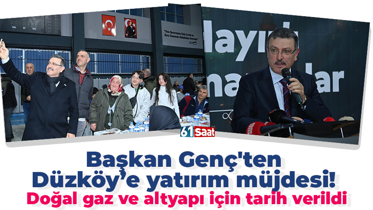 Başkan Genç, sözlerini şöyle sürdürdü: “Kanalizasyon çalışmalarımız bu yıl tamamlanıyor, doğal gaz projemiz yine Sayın Bakanımızın katkılarıyla bu yıl başlıyor ve 2026 yılında Düzköy doğalgaza kavuşmuş olacak. Bunun yanı sıra ilçemizin gururu olan judo takımımızın başarılarıyla da iftihar ediyoruz. Pırıl pırıl gençlerimiz ülkemizin geleceği adına bizlere umut veriyor. İnşallah önümüzdeki süreçte de Düzköy’e hizmet etmeye, hemşehrilerimizin hayatını kolaylaştıracak projeleri hayata geçirmeye devam edeceğiz. Bu vesileyle hem Ramazan Bayramınızı tebrik ediyor, hem de Cenab-ı Allah’tan bizleri nice güzel sofralarda buluşturmasını diliyorum.”