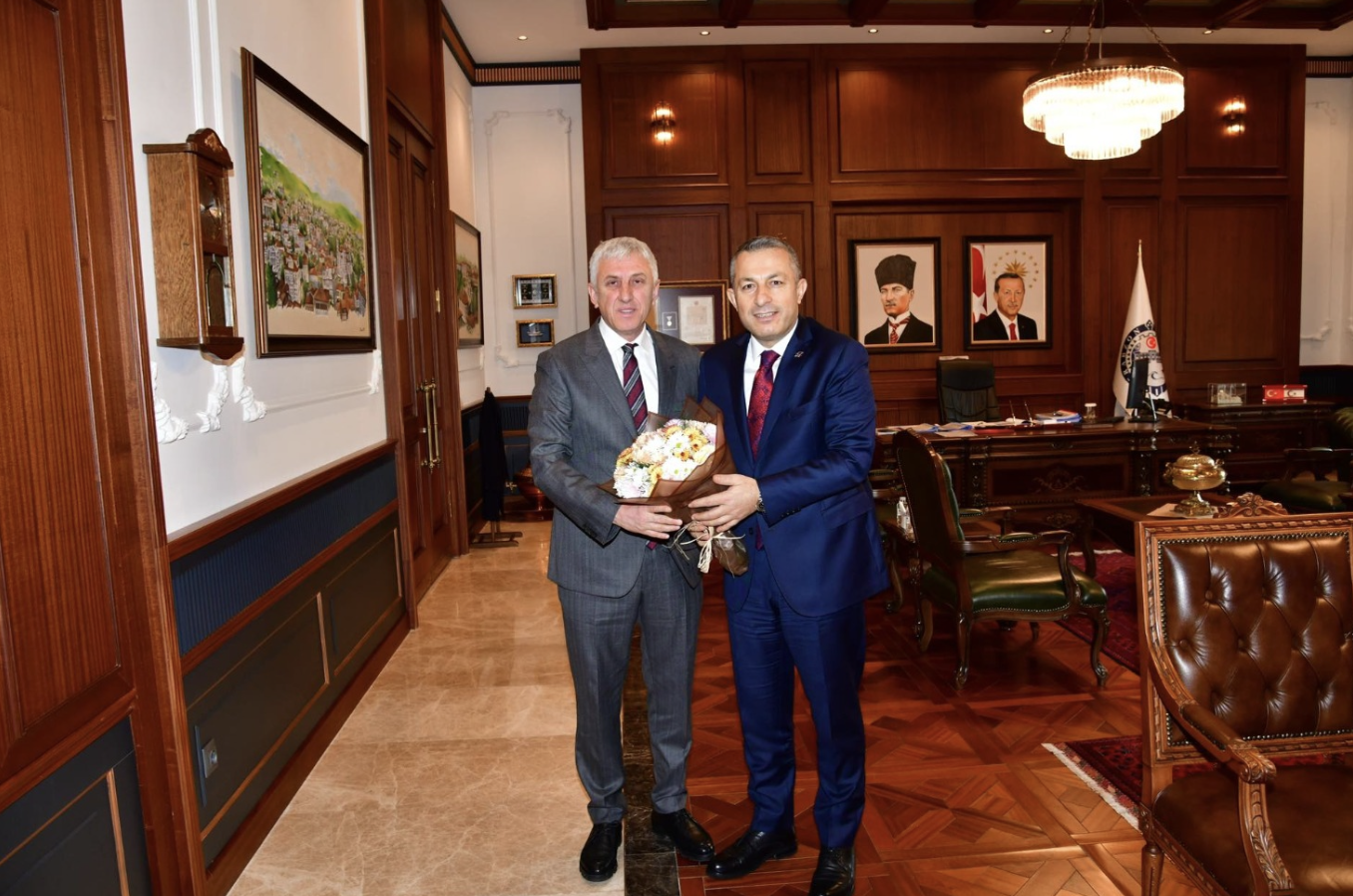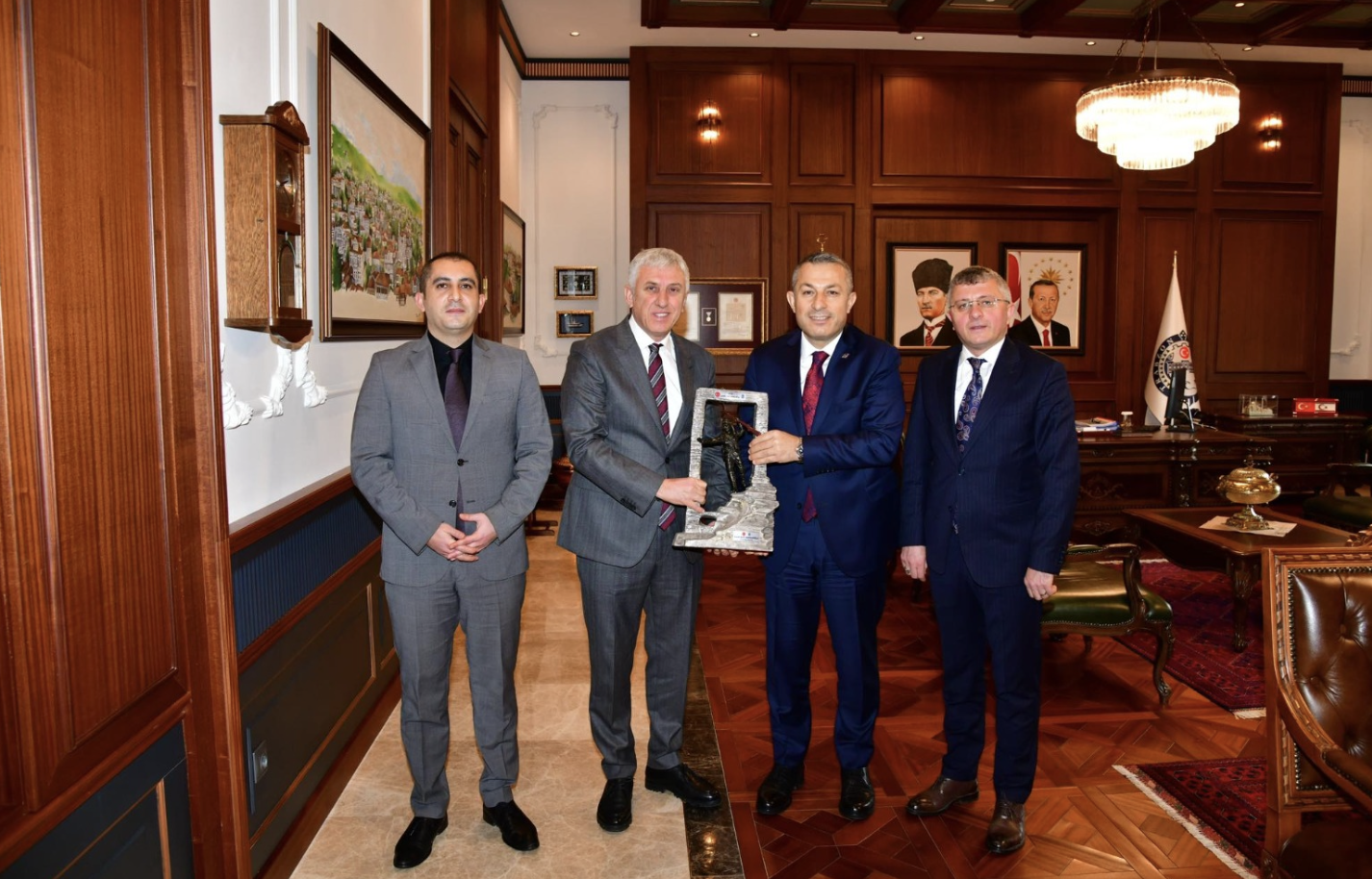 Trabzon Valisi Tahir Şahin ise nazik ziyaretleri ve anlamlı hediyesi dolayısıyla Başkan Sarıalioğlu ve beraberindeki heyete teşekkür ederek, Trabzon'un gelişimi için tüm kurumlarla uyum ve iş birliği içerisinde çalışacaklarını ifade etti.
