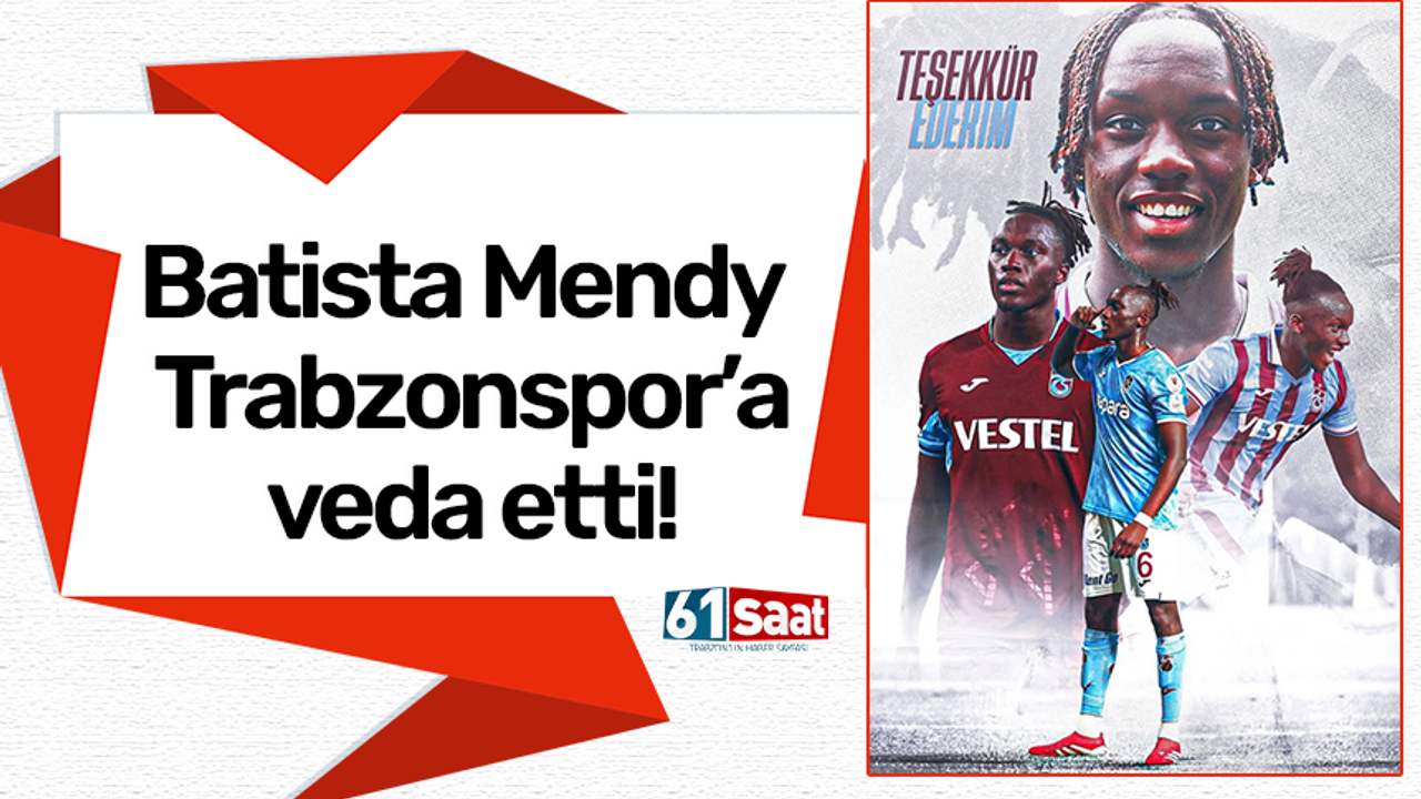 La Liga ekiplerinden Sevilla ile transfer görüşmelerini tamamlamak için İspanya’ya giden ve sağlık kontrollerinden geçen Fransız orta saha Batista Mendy, Trabzonspor’a veda etti. Batista Mendy sosyal medya hesabından yaptığı paylaşımda, "Trabzon halkı, yeni bir maceraya başladım. Bana kattıklarınız için teşekkür ederim” ifadelerine yer verdi. Trabzonspor formasıyla 83 maça çıkan Batista Mendy 3 gol 3 asistlik skor katkısı sağladı. Sevilla'nın da Batista Mendy transferini resmi olarak duyurması bekleniyor.