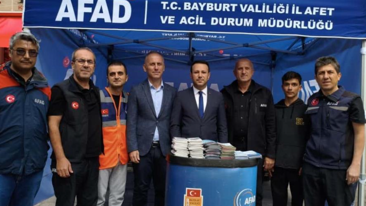 Bayburt İl Müftülüğünün katkılarıyla cami ve Kur'an kurslarında namaz öncesinde afet farkındalığı sohbetleri düzenlendi. Yakutiye Camii'nde cemaate 'Afet Farkındalığı ve İklim Değişikliği' konularında vaaz verildi. Caminin avlusunda AFAD gönüllüleri tarafından kurulan stantta broşür dağıtılarak, bilgilendirme yapıldı.