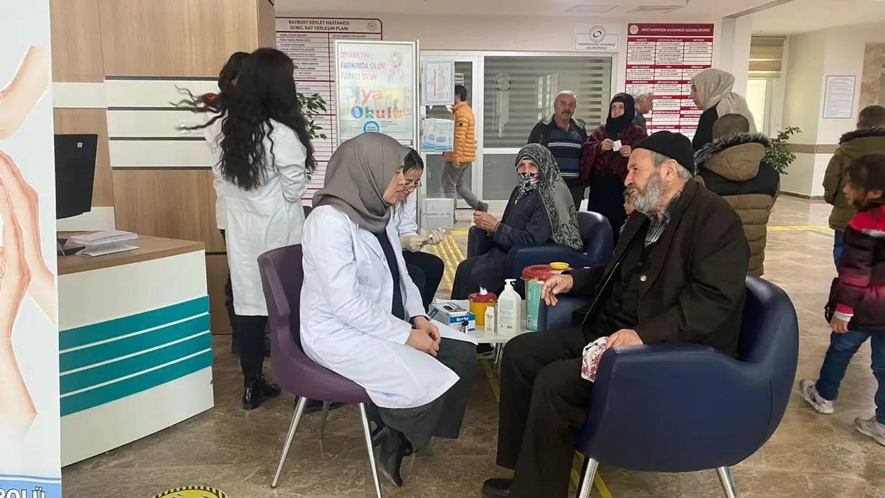 Vatandaşları bilinçlendirmek ve yürütülen çalışmalara dikkat çekmek amacıyla hastanenin giriş katında ’Geleceğimizi Diyabetten Koruyalım’, ’Doğru Beslen, Hareket Et Takipte Kal, Diyabetten Korun’ ve ’Diyabetin Farkında Olun, Farklı Olun’ sloganlarıyla sağlık personellerince stant açılarak, hastaneye başvuran hasta ve hasta yakınları diyabet ve diyet konularında bilgilendirildi.