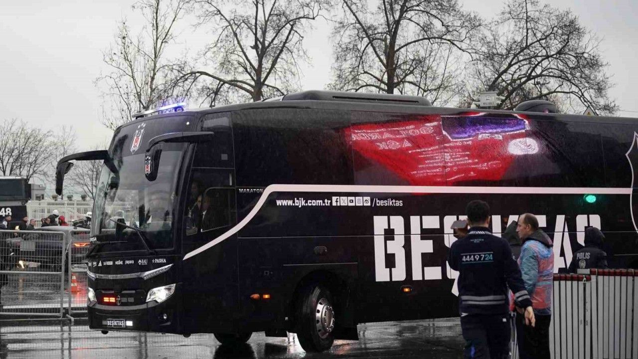 Siyah-beyazlı kafile, yoğun güvenlik önlemleri altında stadyuma girdi.