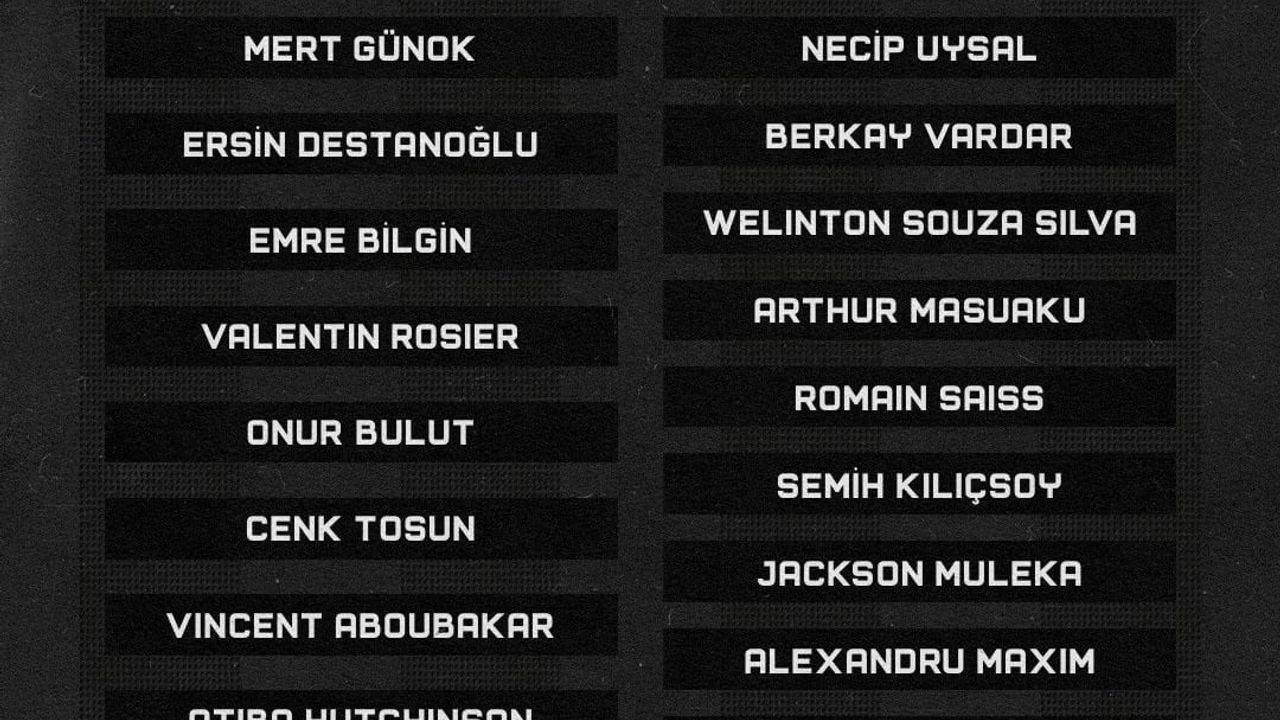 "Mert Günok, Ersin Destanoğlu, Emre Bilgin, Valentin Rosier, Onur Bulut, Cenk Tosun, Vincent Aboubakar, Atiba Hutchinson, Nathan Redmond, Kerem Atagan Kesgin, Amir Hadziahmetovic, Necip Uysal, Berkay Vardar, Welinton Souza, Arthur Masuaku, Roman Saiss, Semih Kılıçsoy, Jackson Muleka, Alexandru Maxim, Demir Ege Tıknaz, Umut Meraş, Gedson Fernandes ve Tayfur Bingöl."