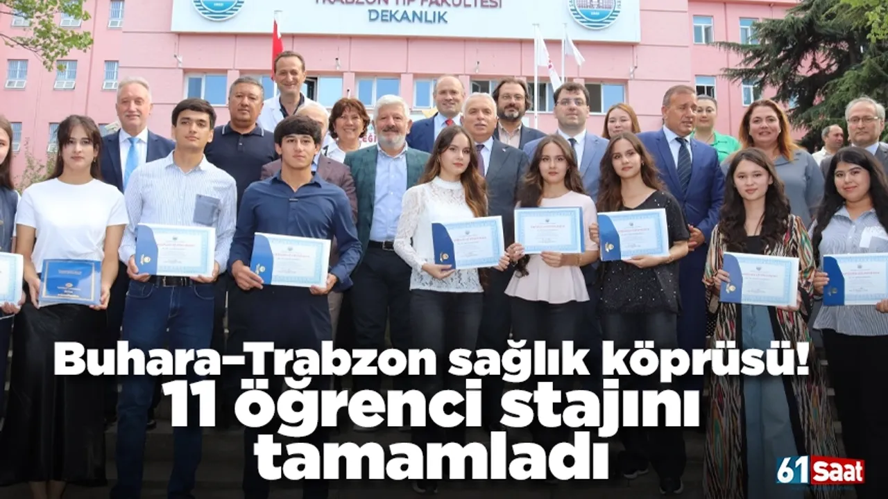 Sağlık Bilimleri Üniversitesi (SBÜ) Özbekistan Buhara İbn-i Sina Tıp Fakültesi' de öğrenim gören 11 öğrenci, Trabzon Kanuni Eğitim ve Araştırma Hastanesi'nde tamamladıkları bir aylık staj programının ardından sertifikalarını aldı. Program, sertifika ve veda töreniyle sona erdi.