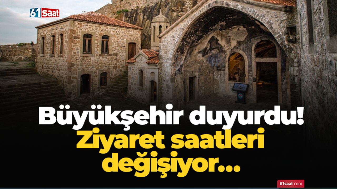 Trabzon Büyükşehir Belediyesi, kış sezonunun başlaması dolayısıyla Atatürk Köşkü, Çal Mağarası, Kızlar Manastırı ve Şehir Müzesi’nin ziyaret saatlerinde değişiklik yapıldığını açıkladı. Buna göre şehrin güzelliklerini barındıran turizm merkezleri 1 Ekim 2025 Çarşamba gününden itibaren geçerli olacak şekilde 09.00 ile 17.00 saatleri arasında ziyaret edilebilecek. Büyükşehir Belediyesi’nden yapılan açıklamada şu ifadelere yer verildi: “Tarihi ve turistik destinasyonlarımızın ziyaret saatlerinde kış sezonunun başlamasından dolayı değişiklik yapılmıştır. Büyükşehir Belediyesi olarak, her mevsim olduğu gibi kış sezonunda da siz değerli ziyaretçilerimizi ağırlamaya ve turizmi daha ileriye taşımaya devam edeceğiz.”