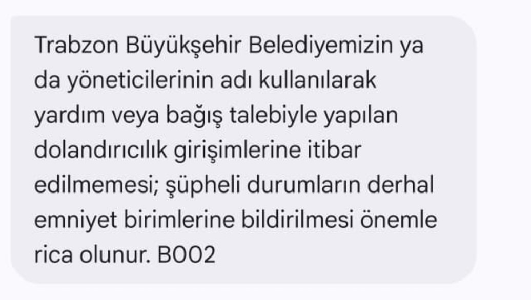 Trabzon Büyükşehir Belediyesi, dolandırıcılıkla mücadele amacıyla emniyet birimleriyle işbirliği içinde çalışmalarına devam edeceğini ve halkın güvenliğini ön planda tutarak bu tür suçlara karşı taviz vermeyeceğini belirtti.