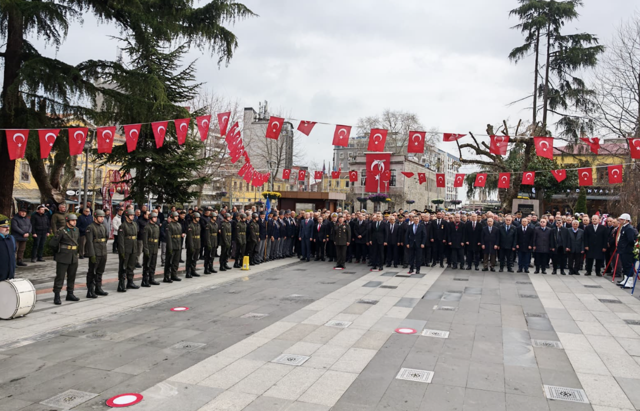 Türk milletinin bağımsızlık mücadelesinin simgelerinden Çanakkale Zaferi'nin yıl dönümü ve 18 Mart Şehitleri Anma Günü dolayısıyla Trabzon'da çelenk sunma töreni düzenlendi.