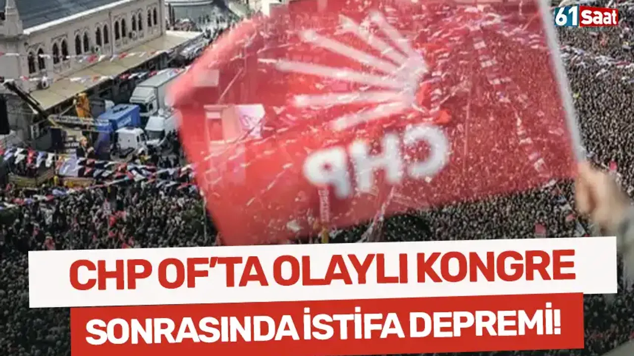 CHP Of İlçe Örgütü'nde, geçtiğimiz günlerde düzenlenen ilçe kongresi sonrası başlayan usulsüzlük iddiaları ilk istifayı beraberinde getirdi. İlçe Başkanı Fahri Kaptanoğlu liderliğindeki yönetim kurulunun, kongre sonrası yaptığı ilk toplantıdan sonra ilçe yönetim kurulu üyelerinden Yunus Erkan süreçle ilgili memnuniyetsizliğini dile getirerek istifa etti.
