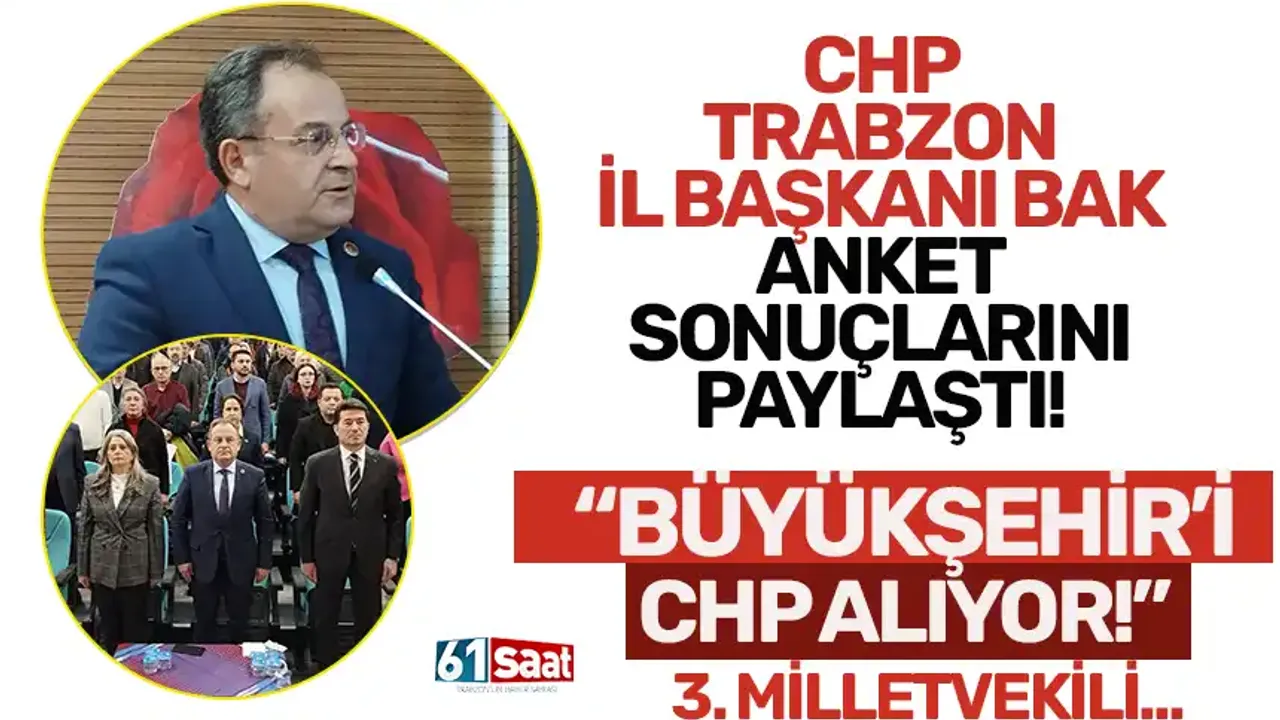 Genel Merkezden Trabzon ile ilgili aldığı anket çalışmalarını da paylaşan Bak, “Anket çalışmalarında bugün büyükşehir seçimi olsun, seçimi kazanacak orana ulaştık. Bugün büyükşehir belediye başkanlığı seçimini yarın sandık olsa (Trabzon’da) CHP kazanacaktır.