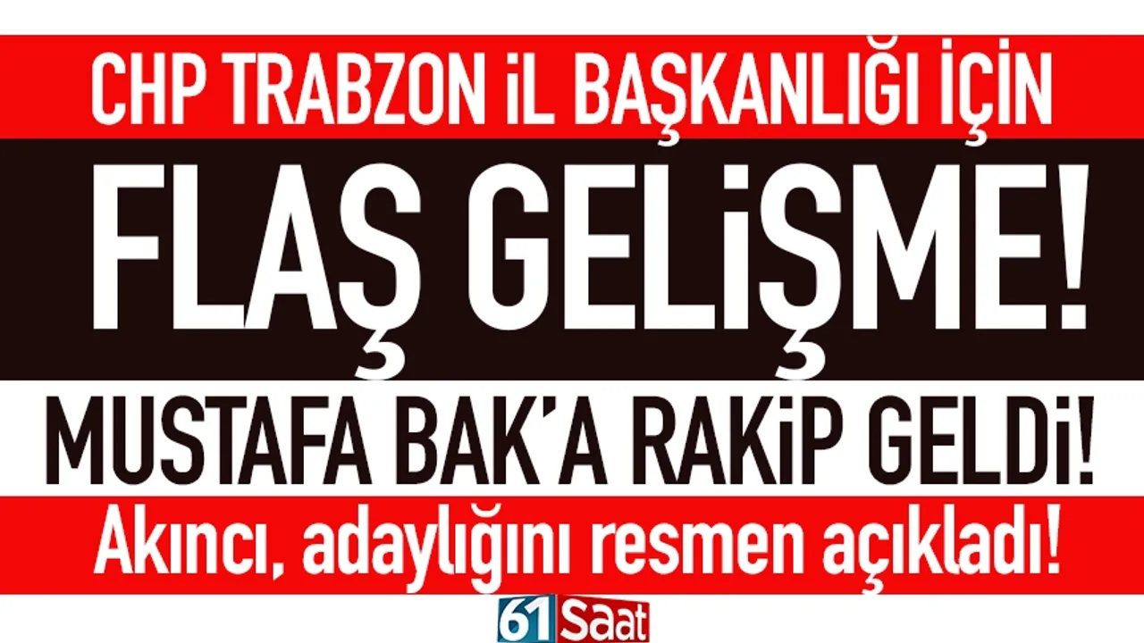 Cumhuriyet Halk Partisi'nde bugün dikkat çeken bir gelişme yaşandı. İlçe Kongrelerini sürdüren CHP Trabzon İl Teşkilatında, İl Başkanlığı için mevcut İl Başkanı Mustafa Bak'a rakip çıktı.