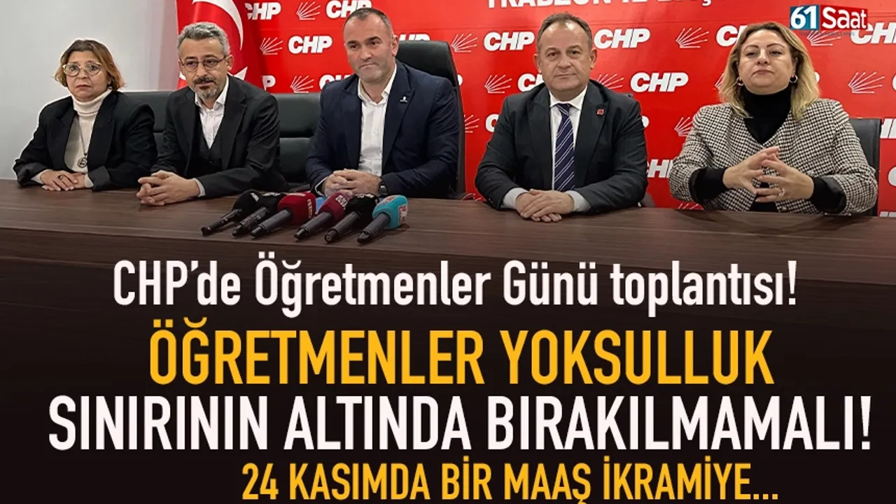 CHP Trabzon İl Başkanlığı Eğitimden Sorumlu İl Başkan Yardımcısı Bayram Turan, 24 Kasım Öğretmenler Günü dolayasıyla bir basın açıklaması yaptı. İl Başkanlığında düzenlenen toplantıya İl Başkanı Mustafa Bak'ın yanı sıra il yöneticileri ve partililer katıldı.