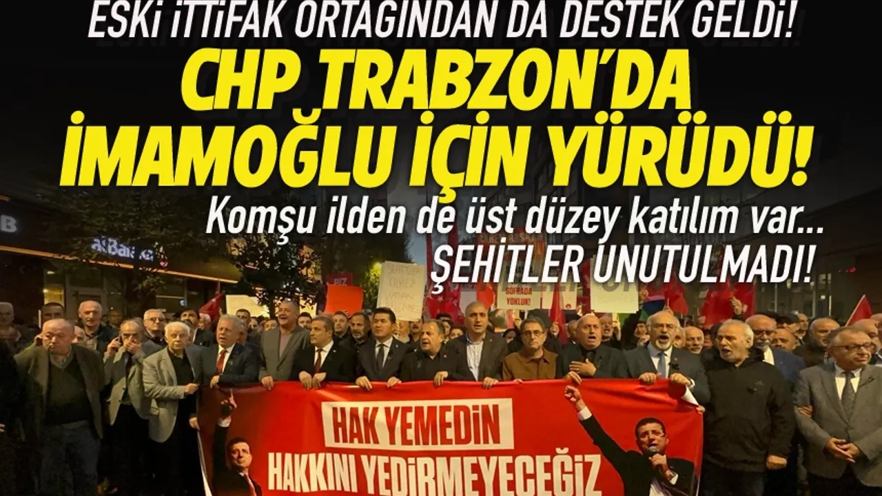 Cumhuriyet Halk Partisi (CHP) Trabzon İl Başkanlığı, CHP’nin Cumhurbaşkanı adayı ve tutuklu İBB Başkanı Ekrem İmamoğlu hakkında hazırlanan iddianameye tepki göstermek amacıyla bugün yürüyüş ve basın açıklaması gerçekleştirdi.