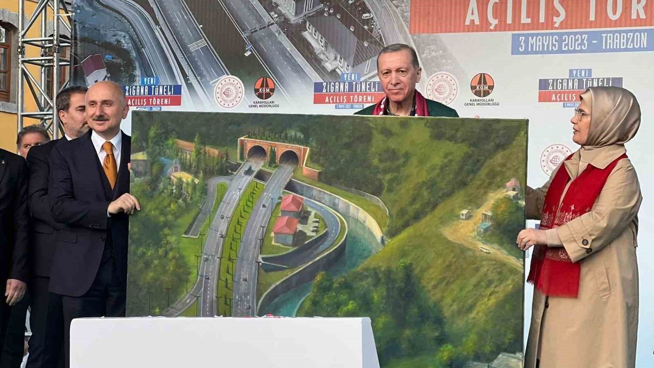 Konuşmasının ardından Cumhurbaşkanı Erdoğan, telekonferans yöntemi ile Zigana Tüneli’nin açılışını gerçekleştirdi. Ulaştırma ve altyapı Bakanı Adil Karaismailoğlu, tarafından tünelin yağlıboya resmi Cumhurbaşkanı Erdoğan’a hediye edildi.