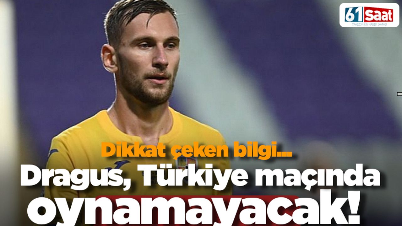 Trabzonspor'dan Eyüspor'a kiralanan Denis Drăguș, Romanya’nın en dikkat çeken oyuncuları arasında yer alsa da cezası nedeniyle Türkiye karşısında forma giyemeyecek. Dragus Bosna Hersek ile oynanan karşılaşanın 67. dakikasında direkt kırmızı kart sonucu oyundan atılmıştı. 2 maç cezası nedeniyle karşılaşmada forma giyemeyecek.