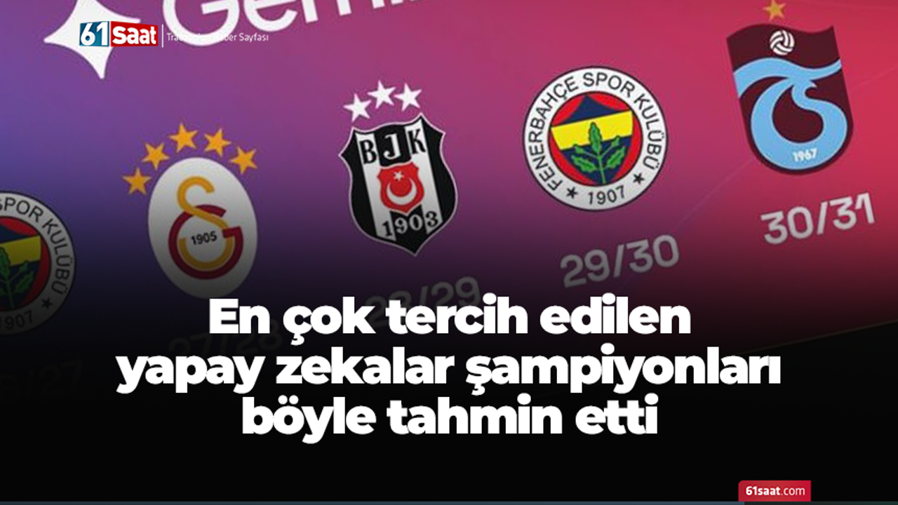 Trendyol Süper Lig'de Teknik Direktör Fatih Tekke yönetimindeki Trabzonspor geride kalan 9 haftada topladığı 20 puan ile lider Galatasaray'ın 5 puan gerisinde ikinci sırada yer aldı. Dünyada en çok kullanılan yapay zekalar ChatGPT, Gemini ve Grok önümüzdeki 6 yılın muhtemel şampiyonalarını sıraladı.
