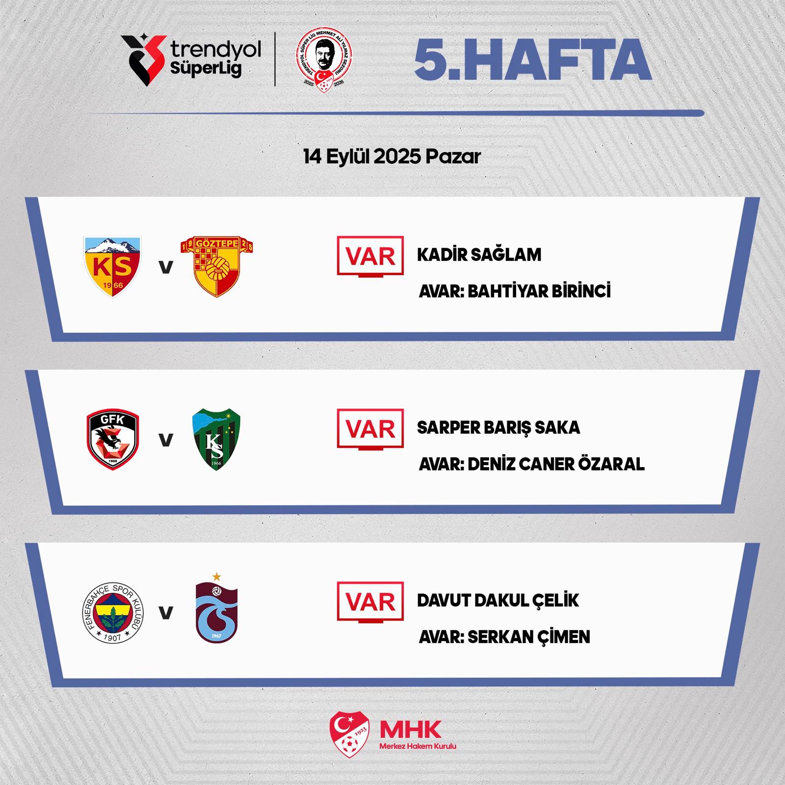 14 Eylül Pazar günü saat 19.00’da Chobani Stadyumu Fenerbahçe Şükrü Saracoğlu Spor Kompleksi’nde oynanacak Fenerbahçe - Trabzonspor maçında VAR hakemi Davut Dakul Çelik oldu.