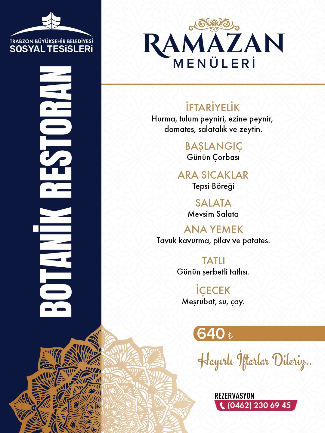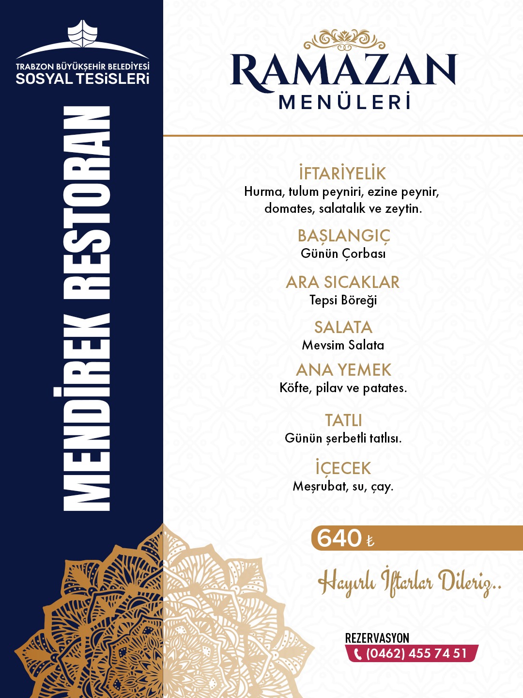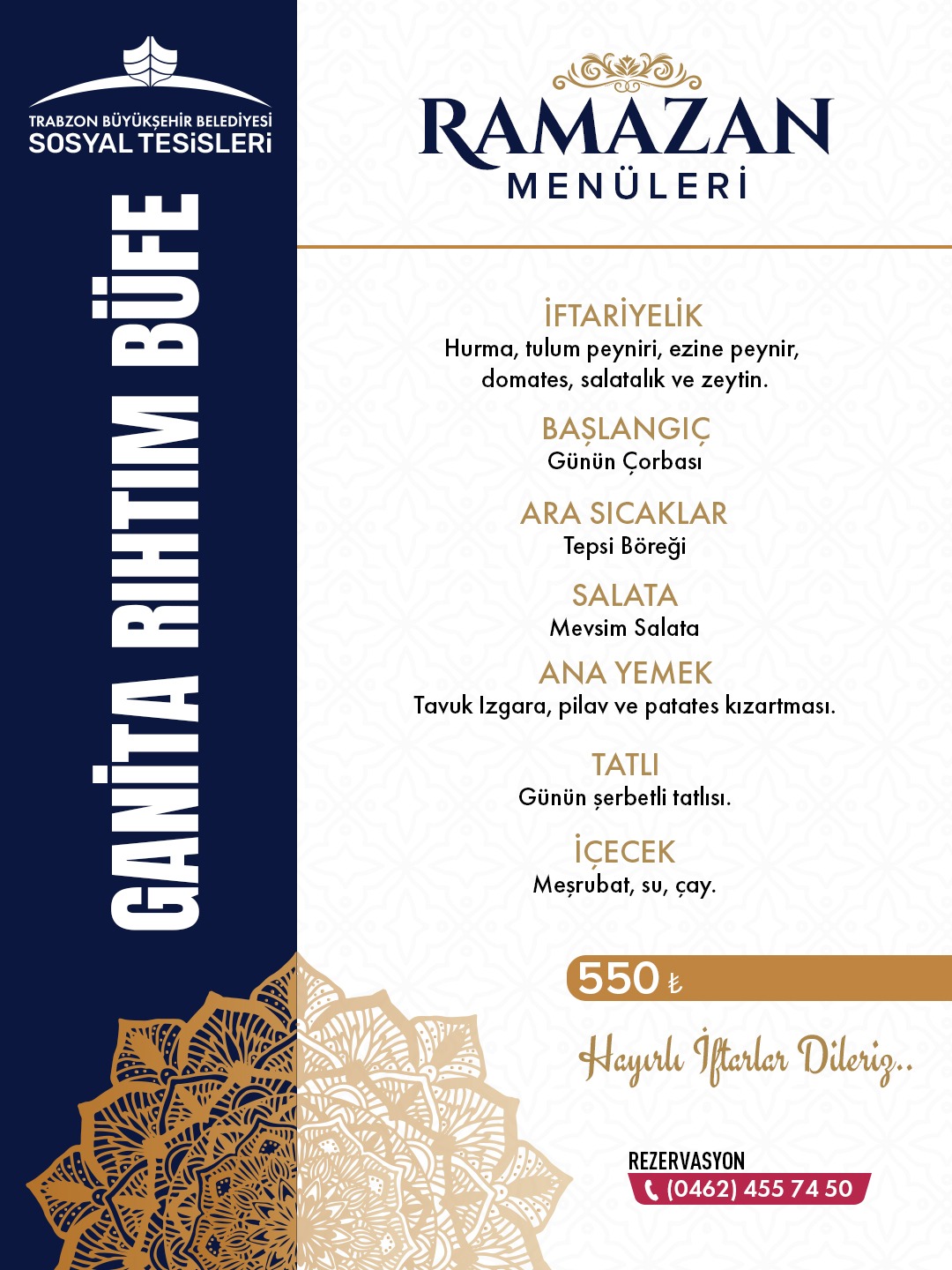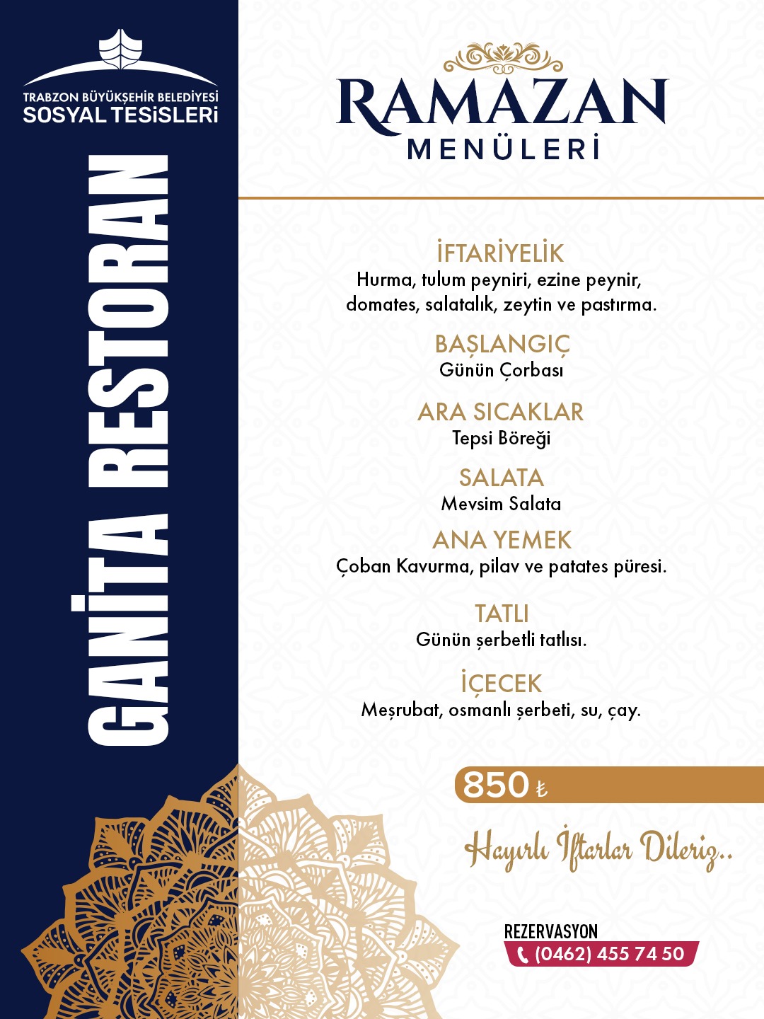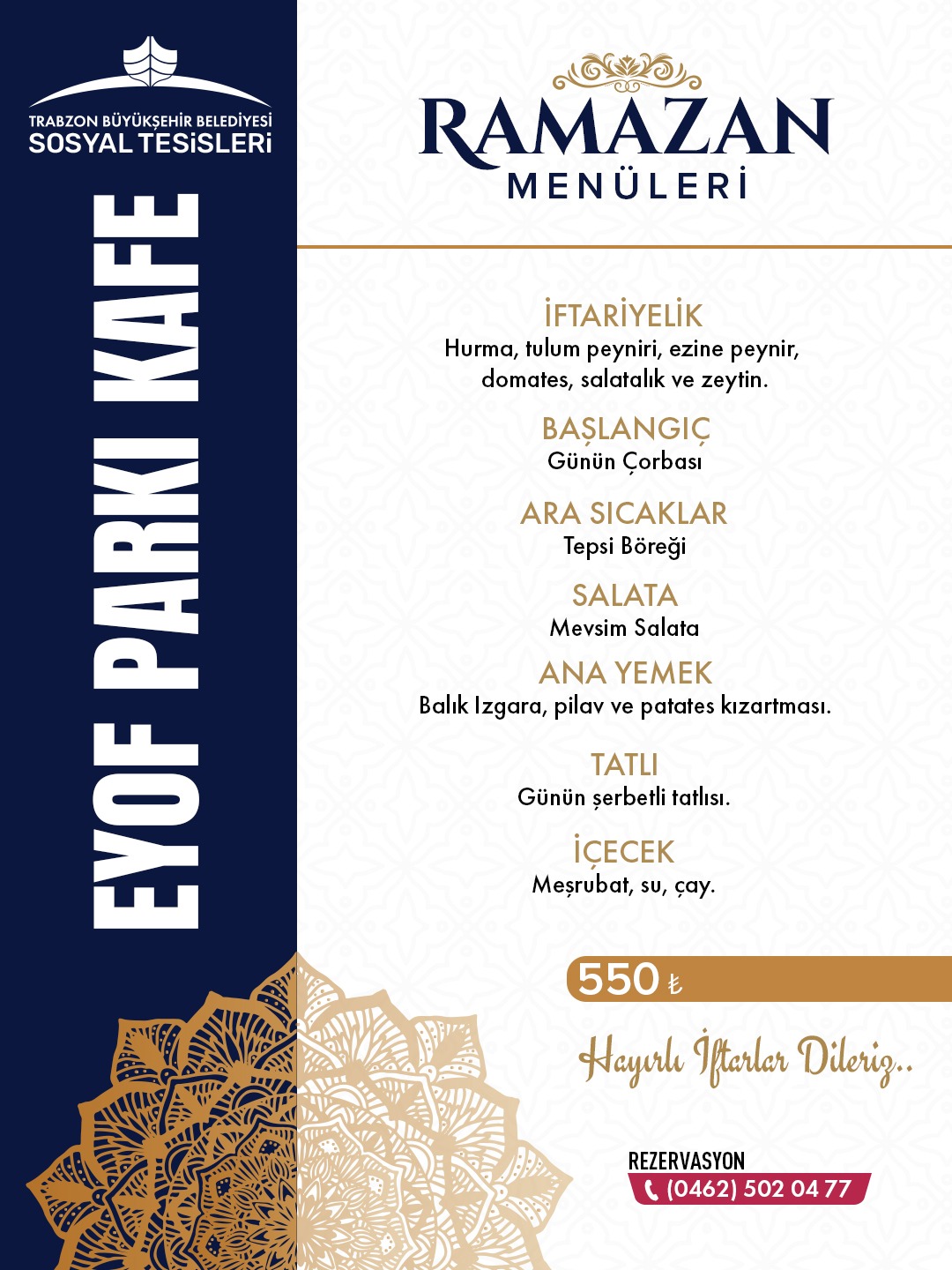 Trabzon Büyükşehir'in sosyal tesislerinde Ramazan Menü Fiyatları belli oldu!