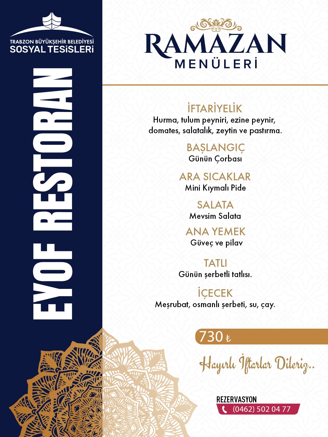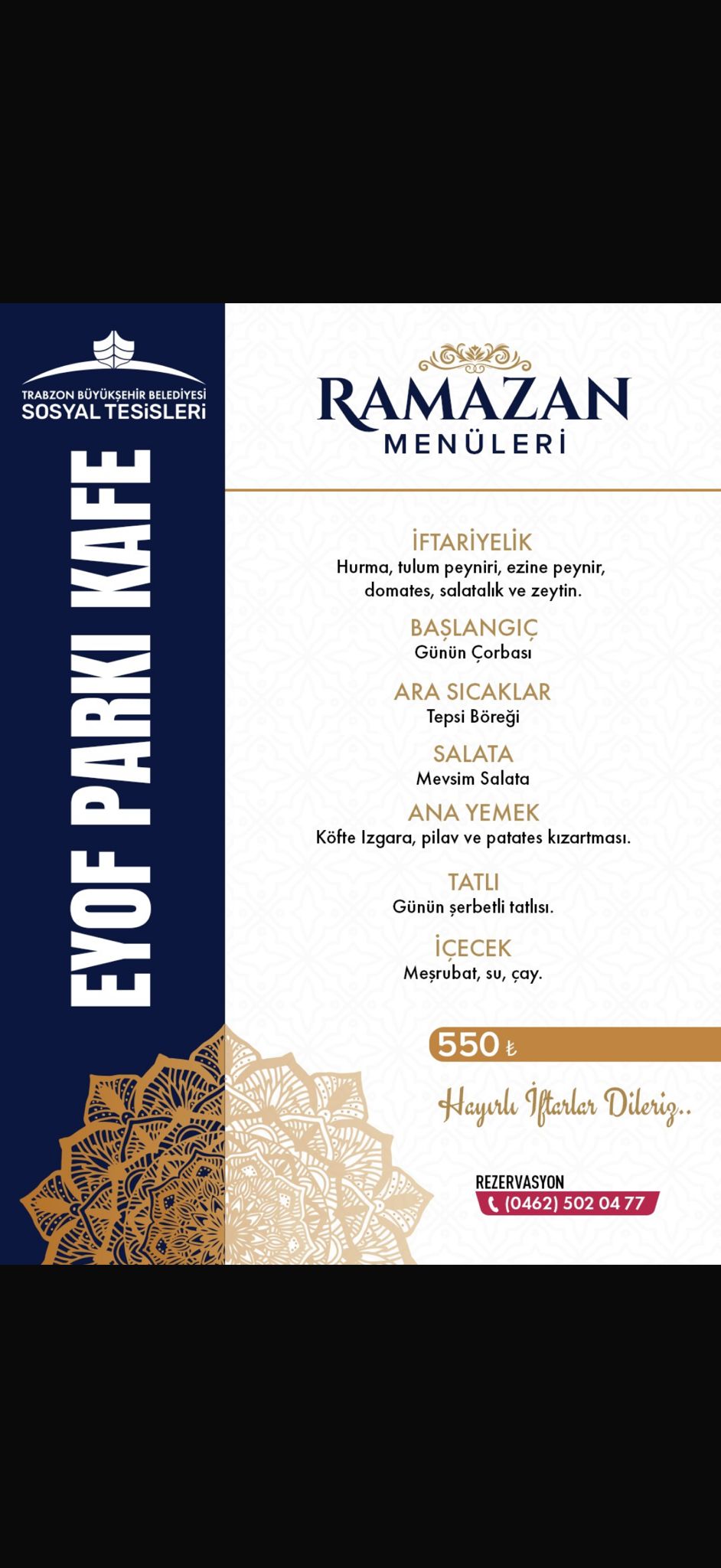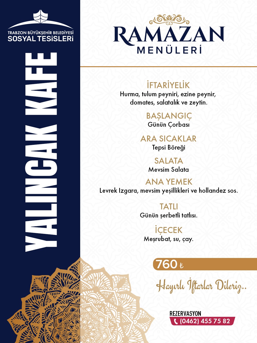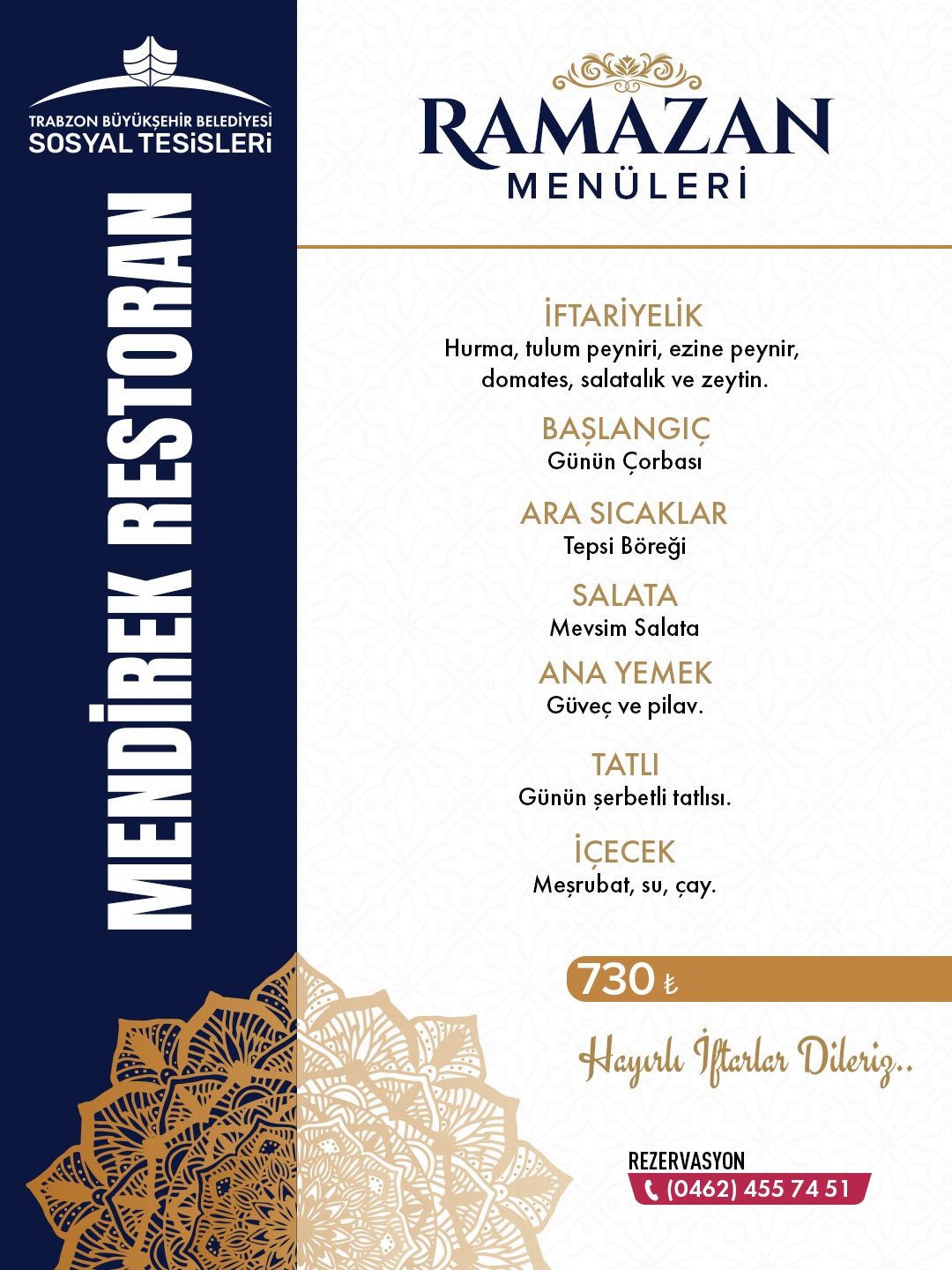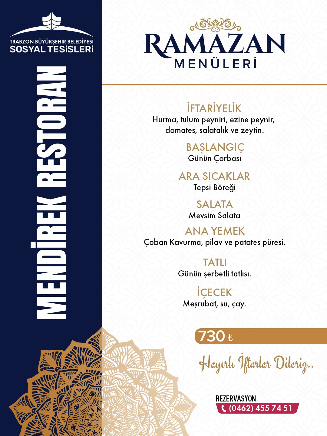 Trabzon Büyükşehir'in sosyal tesislerinde Ramazan Menü Fiyatları belli oldu!