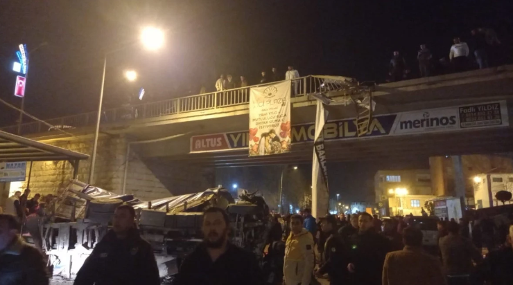 Şanlıurfa'nın Birecik ilçesinde gece saat 21.30 sıralarında freni boşalan seyir halindeki kamyon, yaklaşık bir kilometrelik yolda 7 araca çarptıktan sonra önüne kattığı araçlarla birlikte Fırat Nehri'nin üzerindeki köprüden yola uçtu.