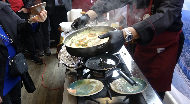 Trabzon’un mutfak kültürünün eşsiz olduğunu aktaran Gastronomi Şefi Akif Budak, “Trabzon’un lezzetlerini dünyaya tanıtmak hayalimdi. Kıbrıs’tan başladık. 11 ülkede lansmanlarını yaptık. Çok etkili oldu. Trabzon’a geldik. 18 ilçenin ayrı ayrı mutfak lezzeti var. Amacımız o kültür gün yüzüne çıkarmak. Sürmene’den başladık. İyi ki de öyle oldu. Böyle yoğun bir kalabalık beklemiyordum. Doğanın ortasında, denizin kenarında şeflerle birlikte olmak bambaşka. Trabzon’un mutfağı müthiş. Trabzon’u bambaşka şehirlere taşıyacağız” diye konuştu.