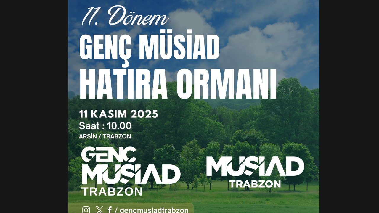 Genç MÜSİAD Trabzon, çevre bilincini güçlendirmek ve gelecek nesillere daha yeşil bir Trabzon bırakmak amacıyla “11. Dönem Genç MÜSİAD Hatıra Ormanı” programını hayata geçiriyor. Etkinlik, 11 Kasım 2025 Salı günü saat 10.00’da Arsin ilçesinde gerçekleştirilecek.