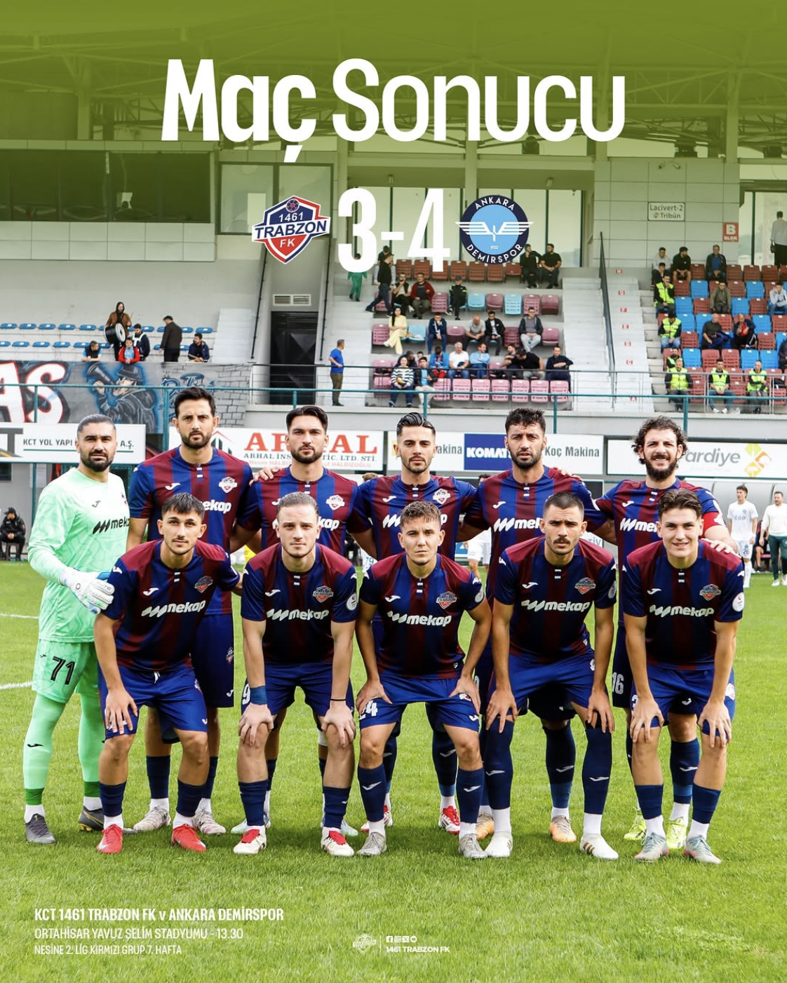 TFF 2. Lig Kırmızı Grup 7. Hafta mücadelesinde KCT 1461 Trabzon FK sahasında Ankara Demirspor’u konuk etti.