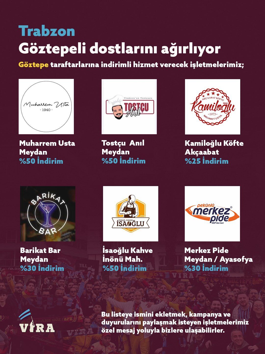 Trabzonspor taraftar gurubu VİRA, Göztepe taraftarları için indirim ve destek kampanyası başlattı.