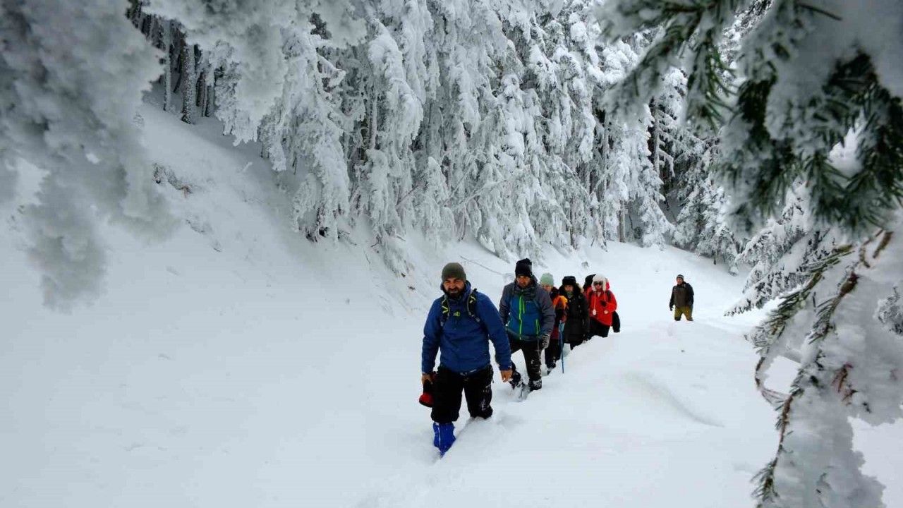 Tersun Dağı geçidinden başlayan ve karla kaplı orman içinde ilerleyen ekip, zorlu koşullara rağmen dayanışma örneği sergiledi. Özellikle erkek sporcular diğer katılımcılar için adeta kar tünelleri açarak ilerlemeyi kolaylaştırırken, bele kadar yükselen kar kütleleri arasında ilerleyen ekip eşsiz kış manzaralarına tanıklık etti. Zirvelerden görünen karlı tepeler ve çam ağaçlarının üzerini kaplayan kar ve buz görüntüsü adete Sibirya’yı, kutupları andırırken, kar örtüsü bölgede görülmeye değer görüntüler oluşturdu. Yürüyüş sırasında Hatunoluğu Yaylasında mola veren ekip, kar üzerinde yapılan sucuk ekmek ikramıyla enerji topladı.