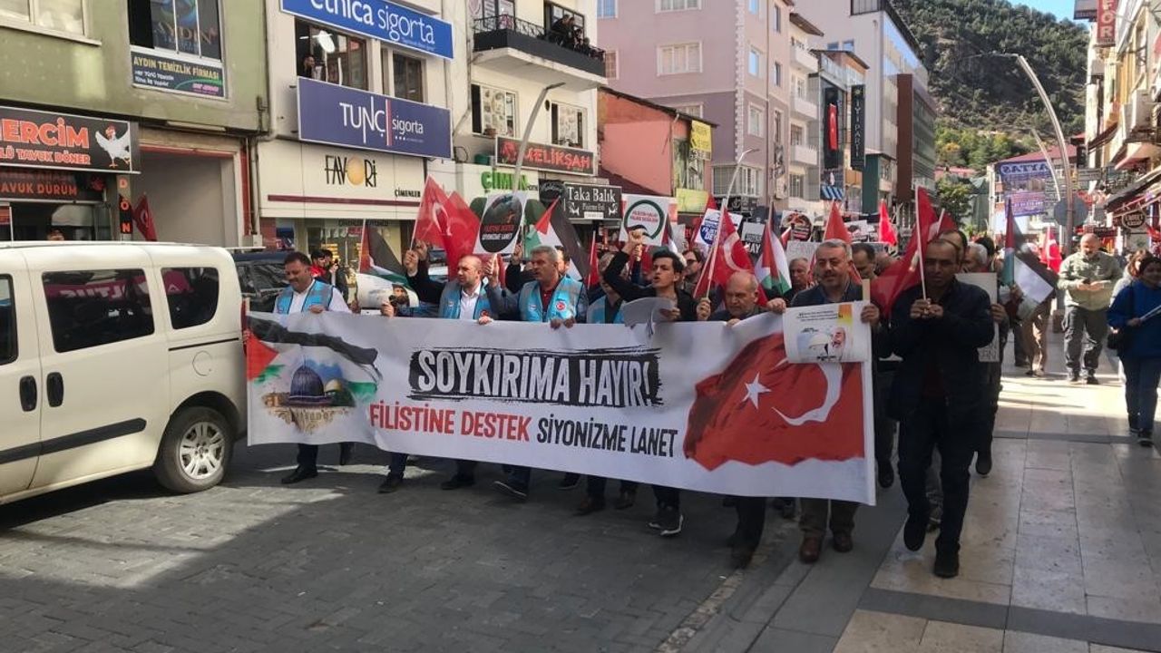 Gümüşhane’de STK’lar tarafından Filistin’e destek yürüyüşü düzenlendi. Yürüyüşe STK’lar dışında vatandaşlar da ilgi gösterdi. Gümüşhane Belediyesi önünden başlayan ve yaklaşık 200 kişinin katıldığı yürüyüşte grup tekbir getirerek ve sloganlar atarak İsrail’in Gazze’ye yönelik saldırılarını lanetledi. 15 Temmuz Zafer Meydanı’nda sona eren yürüyüşün ardından basın açıklaması yapıldı. Grup adına konuşma yapan Gümüşhane Memur Sen İl Başkanı Ergin Aslan, Filistin’de mazlumların kanı üzerine kurulmuş bir düzen olduğunu söyleyerek, İsrail’in saldırılarını kınadı.