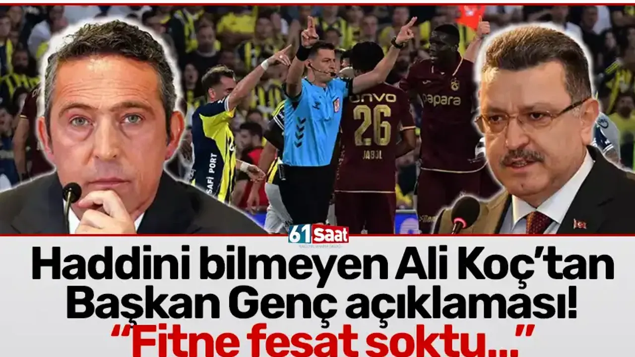 Seçim dönemindekini son sözlerini söyleyen Ali Koç, Başkan Genç ile alakalı olarak, “Futbol paydaşları kendi aramızda bir yere kadar gidebiliyoruz. Bir belediye başkanı öyle bir laf etti ki iki kulüp birbirine girdi. Bir adam işin içerisine fitne fesat soktu. Niye insanları böyle ayrıştırıyorsunuz? Zaten futbol böyle bir hale geldi." İfadelerini kullandı.