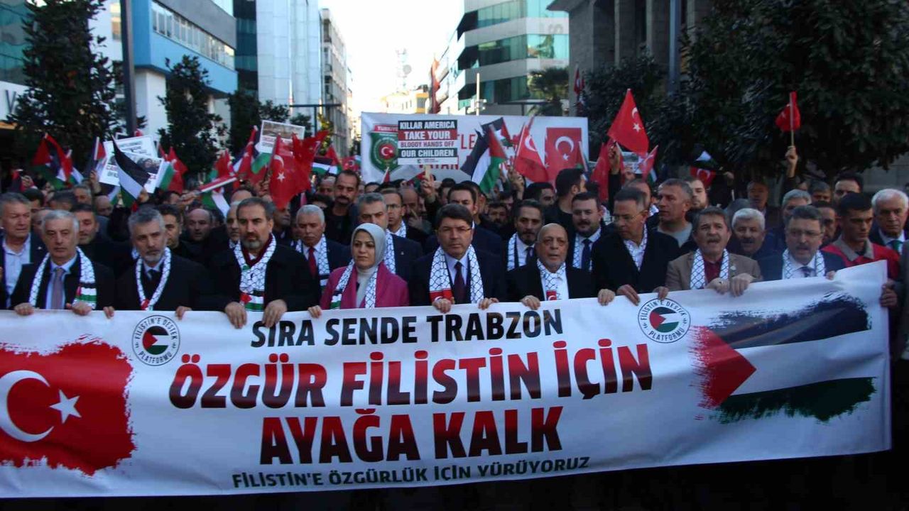 Hak İşçi Sendikaları Konfederasyonu’nun (HAK-İŞ) katılımcıları arasında olduğu, Filistin’e Destek Platformu tarafından Trabzon’da “Aziz Şehitlerimizi Rahmetle Anıyor, Filistin’e Özgürlük İçin Trabzon’da Yürüyoruz” temasıyla miting gerçekleştirildi. Mitinge Adalet Bakanı Yılmaz Tunç, AK Parti Trabzon Milletvekilleri Mustafa Şen, Vehbi Koç, Yılmaz Büyükaydın, Trabzon Büyükşehir Belediye Başkanı Murat Zorluğlu, Ortahisar Belediye Başkanı Ahmet Metin Genç, Filistin Büyükelçisi Dr. Faed Mustafa, HAK-İş Genel Başkanı Mahmut Arslan, HAK-İŞ Genel Başkan Yardımcısı Devlet Sert ve çok sayıda vatandaş katıldı. Yürüyüş için Ortahisar Belediye binası önünde toplanan vatandaşlar ellerine aldıkları ‘Katil ABD Filistin’den defol” yazılı dövizlerle "Şehitler ölmez vatan bölünmez" sloganları attı. Bakan Tunç ve beraberindekiler ’Sıra sende Trabzon, Özgür Filistin için ayağa kalk’ yazılı pankarttı tutarak yürüyüşe destek olurken, 15 Temmuz Şehitler ve Hürriyet Parkı’nda toplanan vatandaşlara bir konuşma yapan Adalet Bakanı Yılmaz Tunç, “7 Ekim’den bu yana Filistin’de bir insanlık ve dünyanın gözü önünde savaş suçu işleniyor, soykırım yapılıyor; bebekler, çocuklar katlediliyor” dedi.