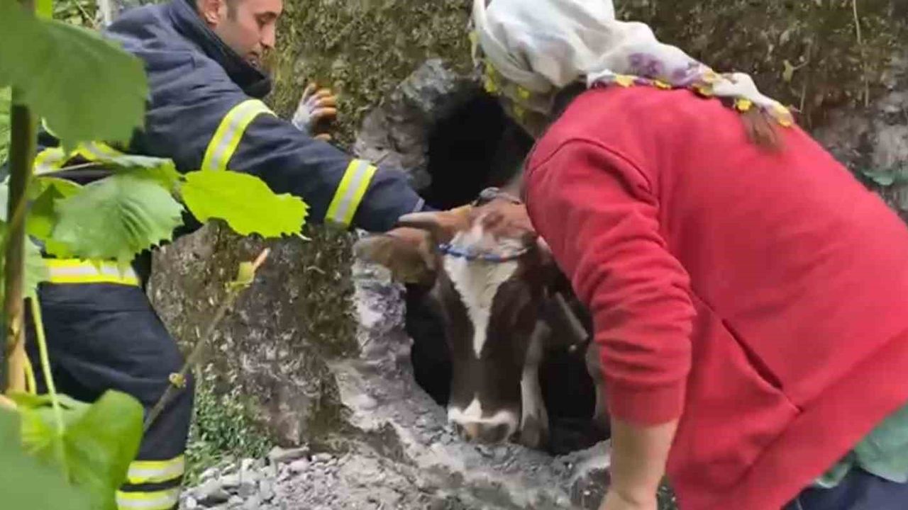 Altınordu’nun Hatipli Mahallesinde bir vatandaşa ait inek boş su deposuna düştü. İneğin sesini duyan mahalle sakinleri kendi imkânlarıyla kurtarmaya çalıştı ancak sonuç alamadı. Bunun üzerine itfaiyeye haber verildi. İhbar üzerine olay yerine gelen Ordu Büyükşehir Belediyesi itfaiye ekipleri, yaptığı çalışma ile ineği boş su deposundan kurtardı.