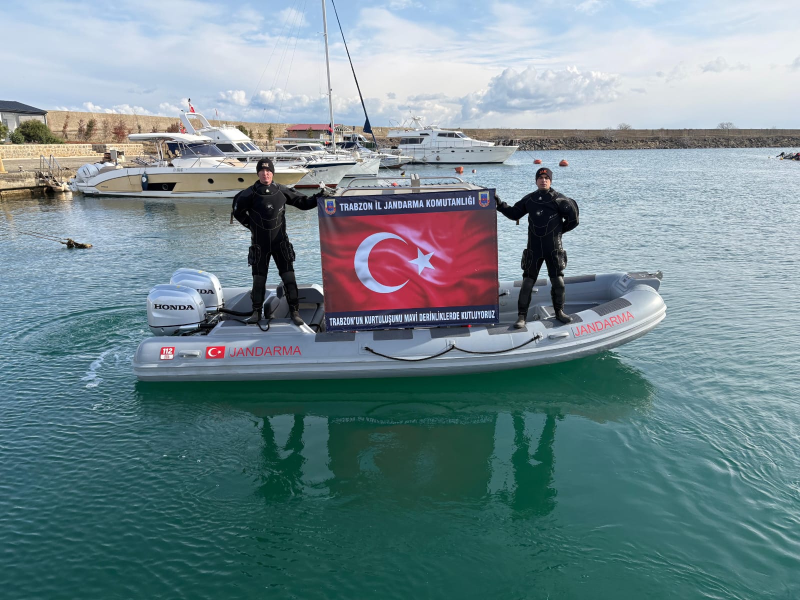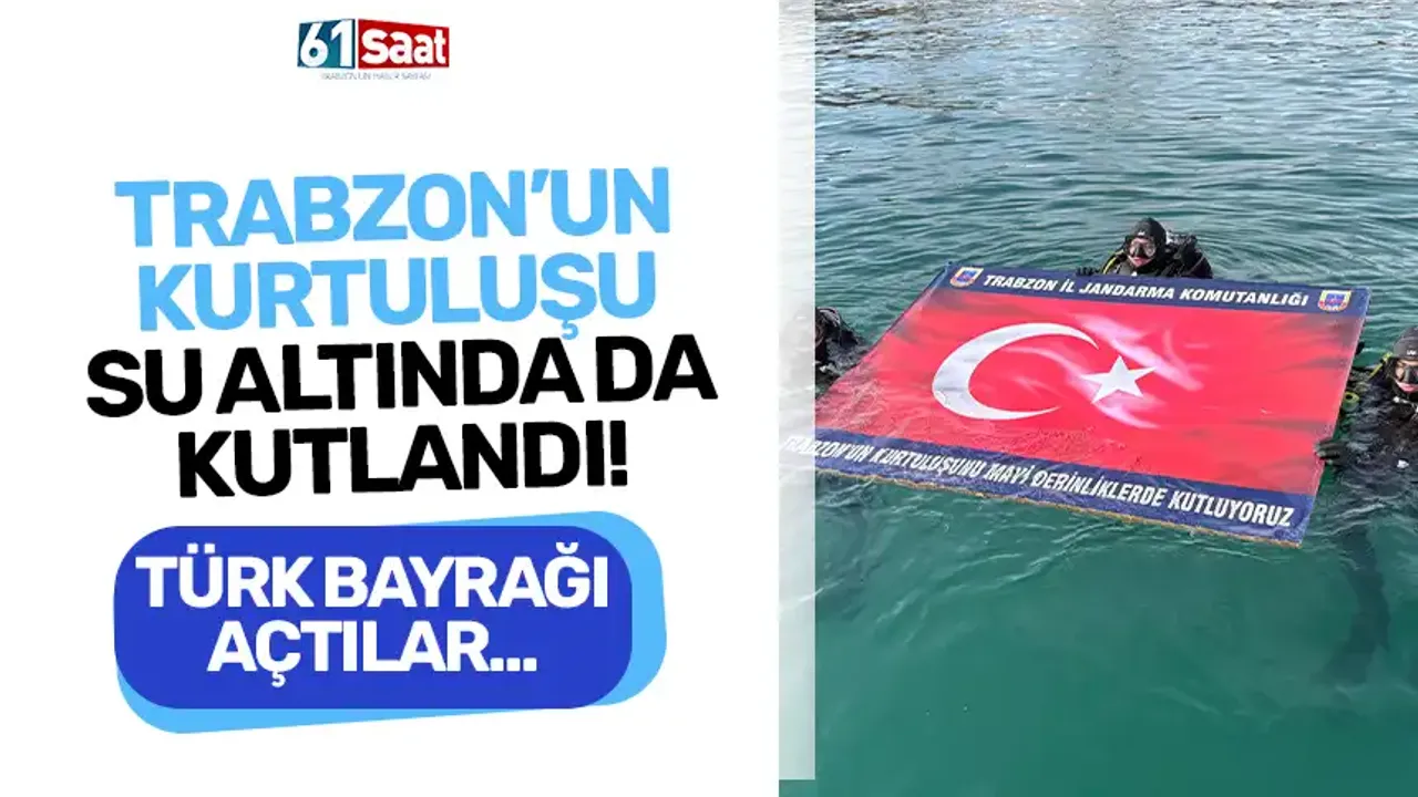 Trabzon İl Jandarma Komutanlığı Sualtı Arama Kurtarma (SAK) timleri, Trabzon'un kurtuluşunun 107'nci yıl dönümünü, Karadeniz'de dalış yapıp su altında Türk bayrağı açarak kutladı.