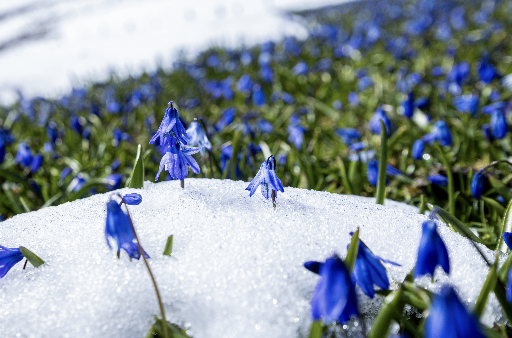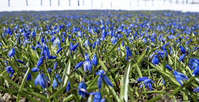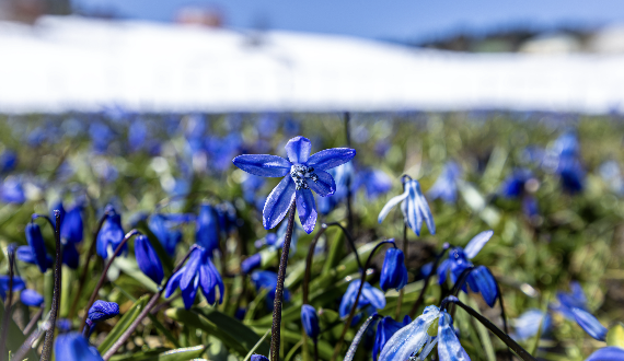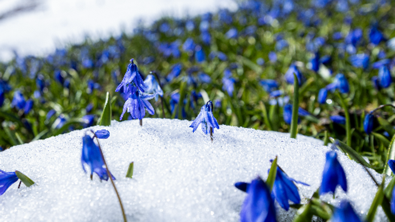 Nisanın ilk haftasından itibaren açmaya başlayan ve bir ay boyunca yaylayı adeta maviye boyayan çiçekler, bu sene kar altında kaldı.